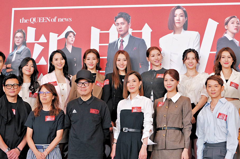 香港文匯報訊(記者 阿祖)無綫台慶劇《新聞女王2》今晚在翡翠台開播,劇集展覽揭幕禮則於昨日舉行,展覽展出演員劇照、新聞主播台以及採訪車。佘詩曼(阿佘)、馬國明、譚俊彥、王敏奕、陳曉華及郭柏姸等出席,大批粉絲到場支持偶像,其中阿佘的粉絲更拉起多幅「《新聞女王2》一路長虹」橫額以作支持。