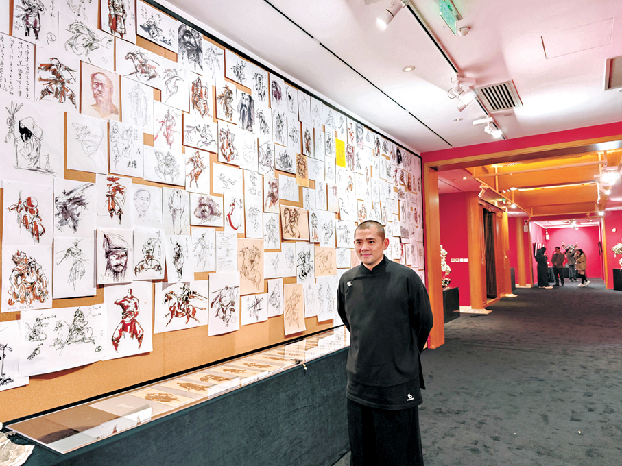在談及展覽名稱「武墨」時,任哲表示,俠的核心在於「俠心」,這是中國文化中極具魅力的部分。他認為,俠並非個體的獨善其身,而是人與人之間良性關係的體現。每個人的心境都有成長的過程,從關注自身、家庭、朋友,到心懷祖國、社會乃至世界,這份格局的拓展正是俠的形成。任哲強調,如今,武俠文化所蘊含的浩然正氣尤為珍貴,而中國傳統文化更能為人際交流與社會發展提供滋養,這也是他打造此次展覽的重要初衷。今次展覽還特別呈現了任哲創作過程中的手稿及書法作品。他表示,希望將這些承載中國文化的元素融入展覽,通過作品託物言志,向大眾傳遞優秀中國文化,同時為中國文化的對外交流貢獻一份力量。