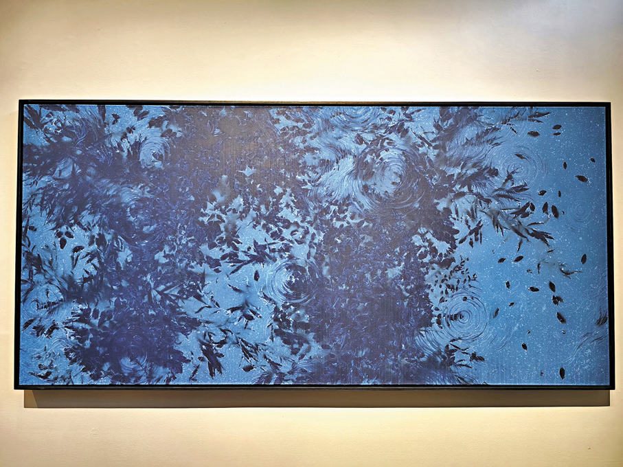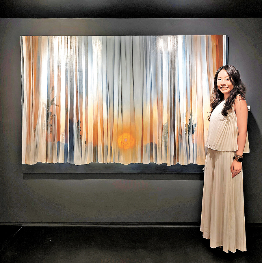 本地青年藝術家Eilly帶來突破二維效果的油畫《太陽以西1》,畫作後裝有一個燈光裝置;藝術家希望這種設計能為觀眾提供遐想的空間,這也是她的一個新嘗試。