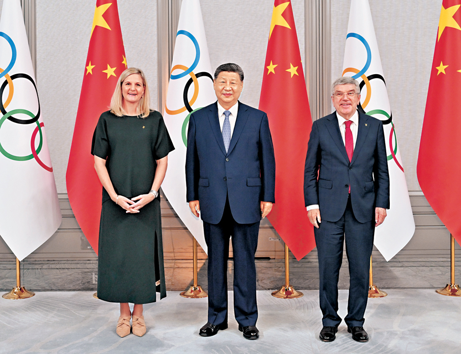 香港文匯報訊 據新華社報道,11月9日下午,國家主席習近平在廣州白雲國際會議中心會見來華出席第十五屆全國運動會開幕式的國際奧委會主席考文垂和終身名譽主席巴赫。