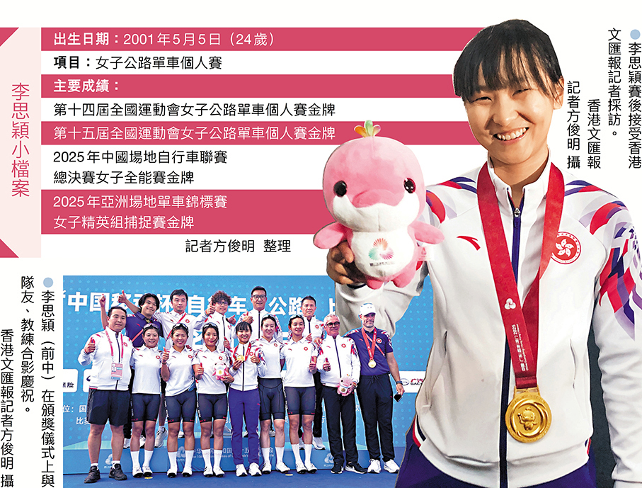 (香港文匯報記者 葉詩敏、方俊明)第十五屆全運會周日開幕日,公路自行車女子個人賽在珠海拉開戰幕,備受矚目的上屆冠軍李思穎強勢登場,她在最後直路佔得有利位置並全力衝刺,最終力壓廣東隊車手魏曉晴,以近一個車身位率先衝線,成功衛冕,為香港單車隊贏下今屆首金,力證亞洲頂級實力。