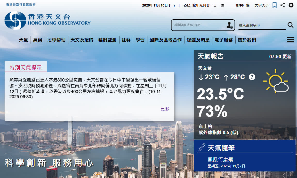 熱帶氣旋鳳凰已進入本港800公里範圍,天文台表示會在今日(10日)中午後,發出一號戒備信號。