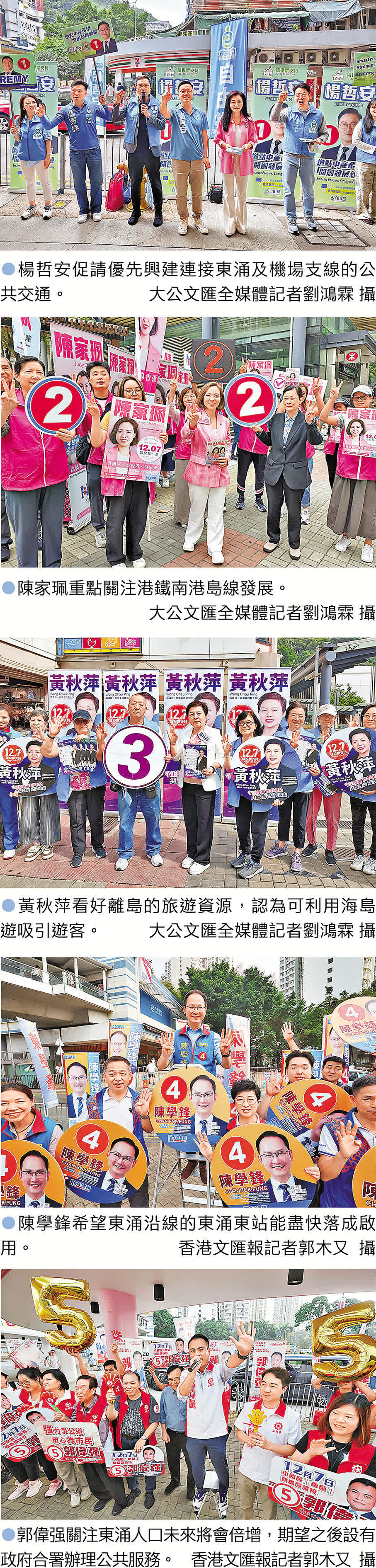 5名參選人昨日亦現身灣仔修頓球場一帶擺街站宣傳。大公文匯全媒體記者現場採訪5位參選人,了解他們在房屋、醫療等議題上的具體主張。