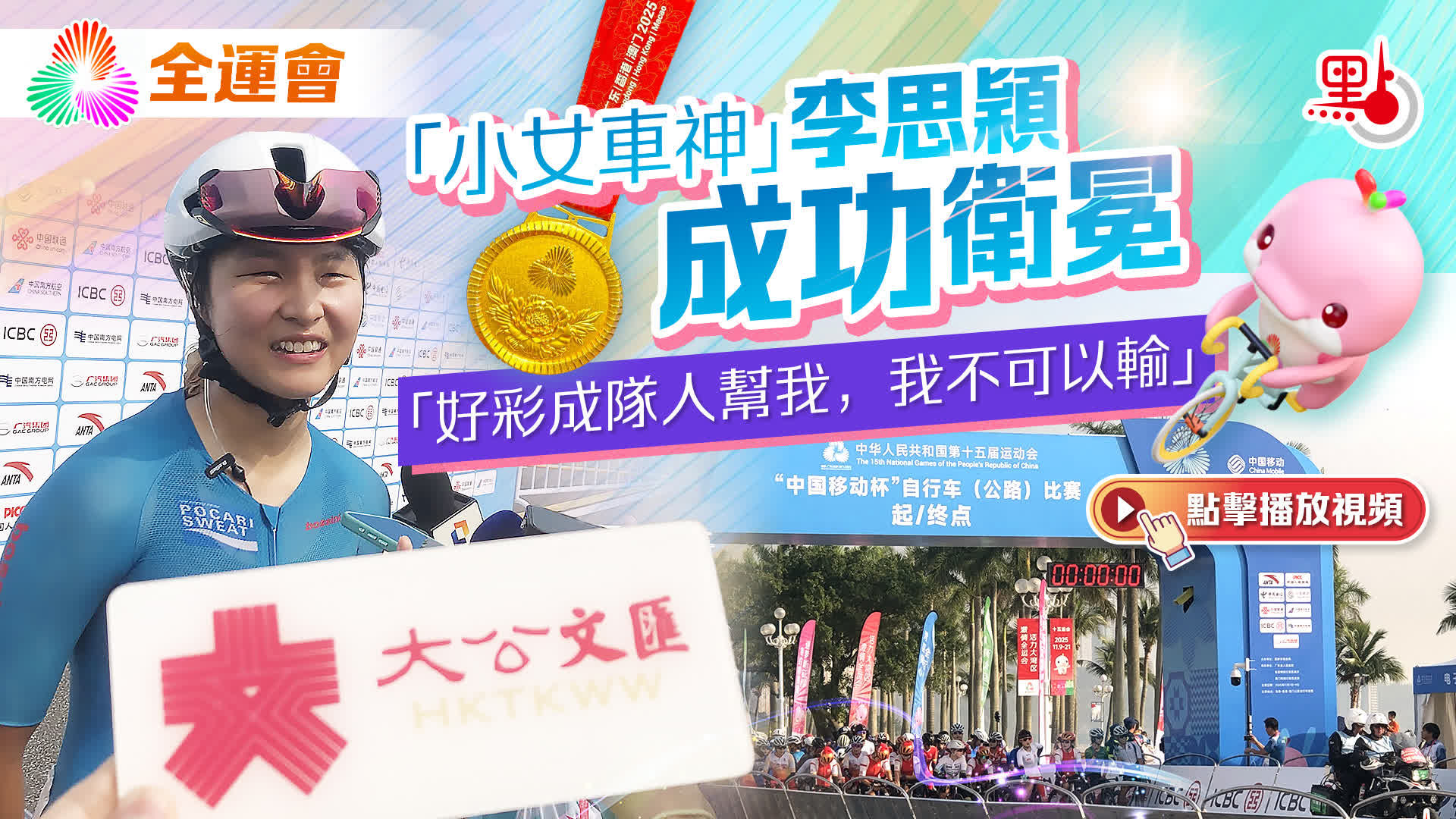 「全運會目標是拿四枚獎牌,我們必須為此竭盡全力」,達海飛談及對港隊主場作戰成績的期望時說道,四枚獎牌意味着一切都要完美,隊伍表現的方方面面都要到位,不僅要有強大的運動員,在戰術和技術上也必須完美無瑕。「因為比賽水平很高,我們不能犯任何錯誤。我們也希望能像上屆全運會,李思穎在公路單車個人賽那樣,拿到一枚金牌。在(香港)單車館會有精彩的表現和激烈的競技。」值得一提的是,撰稿之際,本屆全運會女子公路單車個人賽11月9日在珠海開賽,「小女車神」、24歲香港車手李思穎成功衛冕,為港隊斬獲本屆全運會第二面金牌。