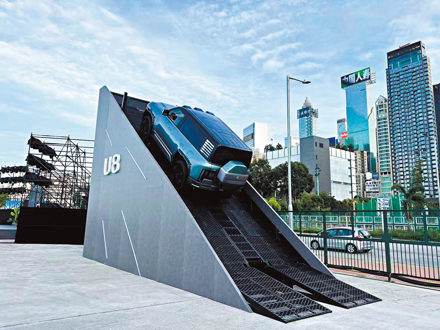 展場最大亮點當屬尚未在香港正式上市的百萬級豪華越野車U8首度登陸香港,這款備受矚目的車型現場演示「窄道通行」等高難度技術,展現其卓越的機動性。演示車輛撘載比亞迪獨有技術「刀片電池」及「e平台3.0」技術,配合高階智能駕駛輔助系統、「雲輦」智能車身控制系統等尖端科技,透過定時表演讓香港市民近距離體驗中國新能源汽車的技術巔峰。