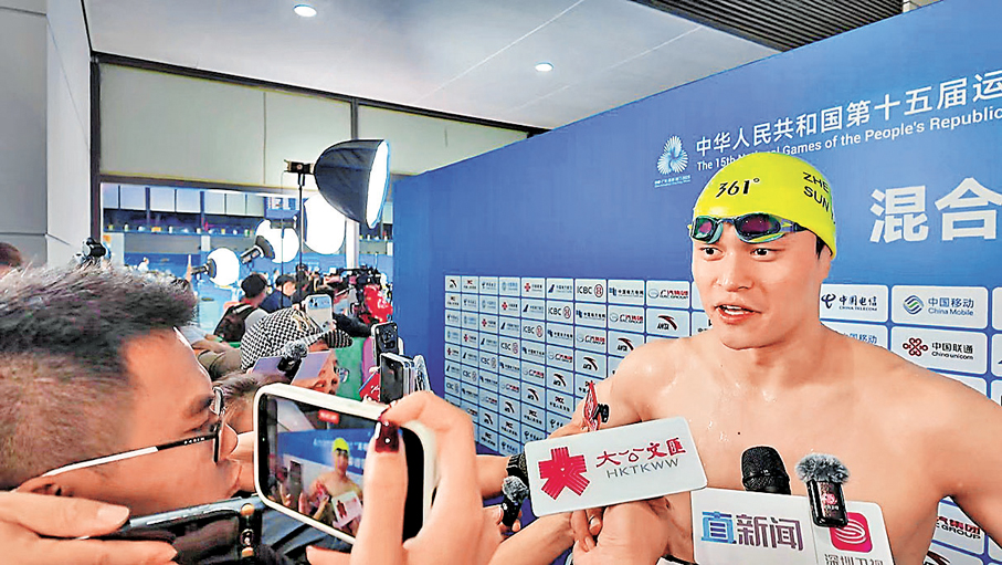 孫楊表示,他看了十五運會的開幕式,這是近兩三屆的全運會裏面最有創意的,又有溫度,在開幕式裏有很多粵港澳三地的這種情感,有家人般的氛圍,與以往單個城市的開幕式是完全不同的。