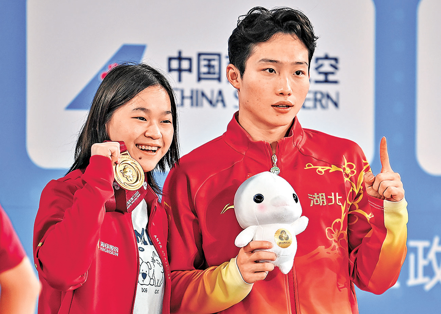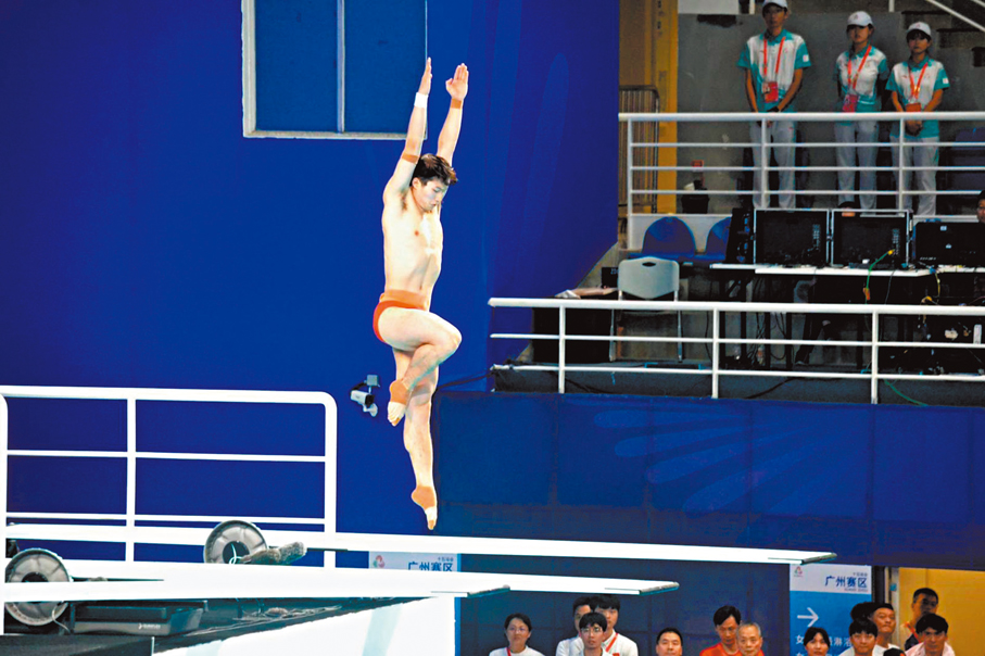 香港文匯報訊(記者 敖敏輝 廣州報道)昨日下午在廣州舉行的十五運會跳水男子3米板決賽中,代表湖北出戰的奧運冠軍王宗源以549.85分的成績強勢奪得金牌,這是他繼男子1米板項目後,在本屆全運會上獲得的第二面金牌。王宗源的湖北隊隊友鄭九源摘銀,廣東隊33歲的老將何超獲得銅牌。從預賽到決賽,王宗源一路都是以絕對優勢領先,多次跳出100分以上的成績,決賽最後一輪甚至跳出106.40分的超高分。談到狀態出色的原因,王宗源說巴黎奧運會未能奪得單人3米板金牌,自己曾一度消沉,今年經過調整,已經沒有了任何心理負擔,幫助自己狀態回勇。