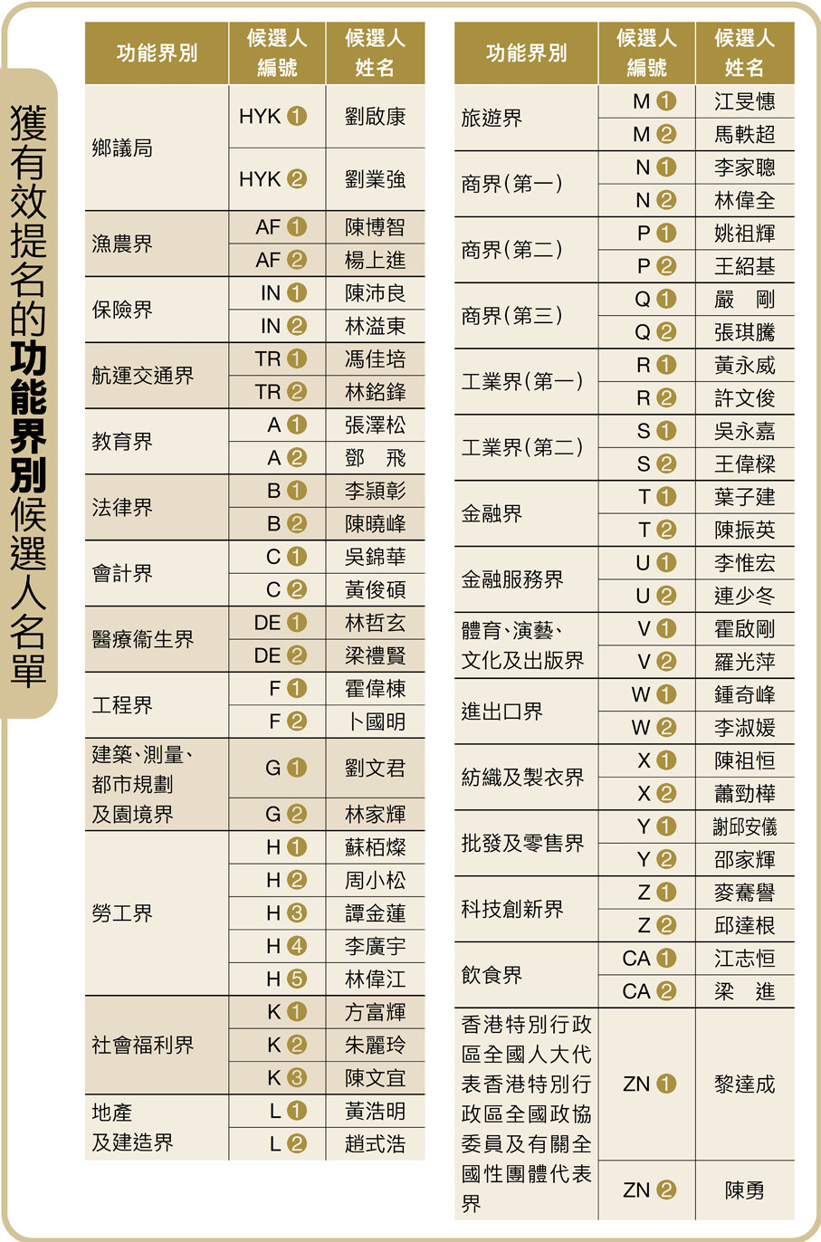 第八屆立法會換屆選舉提名期於本月6日結束,共161人報名參選。特區政府政務司司長、候選人資格審查委員會主席陳國基昨日公布,資審會完成對所有參選人的資格審查核實工作,確認161名參選人均符合「擁護基本法」和「效忠香港特區」的法定要求和條件,並裁定他們的提名有效。今次公布時間較上屆快3天,陳國基表示,每次選舉時,都希望資格審核的工作能夠盡快完成,希望可給予更多時間讓候選人盡快展開選舉工程,讓選民能夠有更多和充分的時間了解每一位候選人的政綱、抱負和貢獻,在投票日時可以作出一個適合的選擇,為香港、為自己選出愛國愛港、立場堅定、有能力、有抱負、有擔當的新一屆立法會議員。●香港文匯報記者 康敬