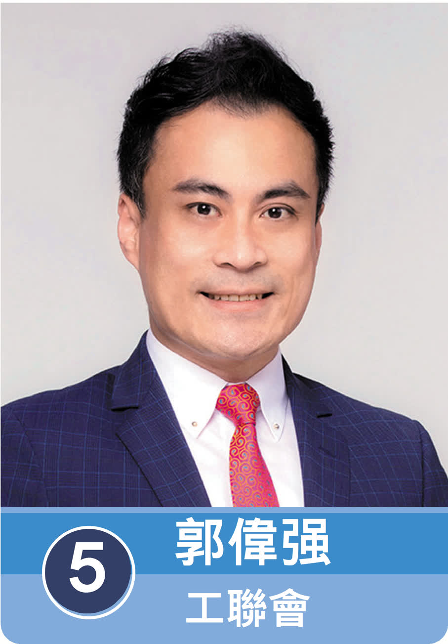5號候選人郭偉强以「強力爭公道 用心為市民」為競選口號。他表示,三屆議會的磨煉賦予他寶貴的實幹經驗及解決問題的眼界及能力,今次選舉競爭激烈,他遇強愈強,讓香港更強。他指出,自己始終與市民並肩同行,理性務實應對各種挑戰,包括東涌的機場城市發展以及人口急增對社區設施需求,東涌線延線工程進展,海怡半島港燈酒店工程的關注,西環邨重建的細節,香港仔街市現代化成效,鴨脷洲街市對翻新的意見等。