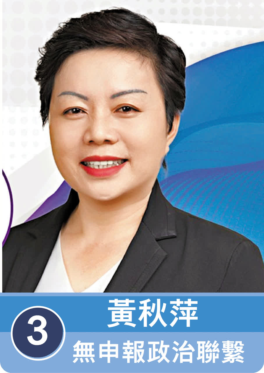 另外,她亦推動海島經濟和特色旅遊,希望善用科技賦能,整合各區資源,挖掘深度遊路線,培養更多本地導賞員,提升景點吸引力。勞工政策方面,她認為政府要按勞動市場實際狀況,動態調配各行業配額,保障本地居民優先就業。同時,政府要提升街市等公營設施的營商環境,適當地引入市場機制和資金,加快優化或翻新。考慮到港島西聚居不少非華裔人口,黃秋萍提議,進一步完善非華語學生的學習支援。