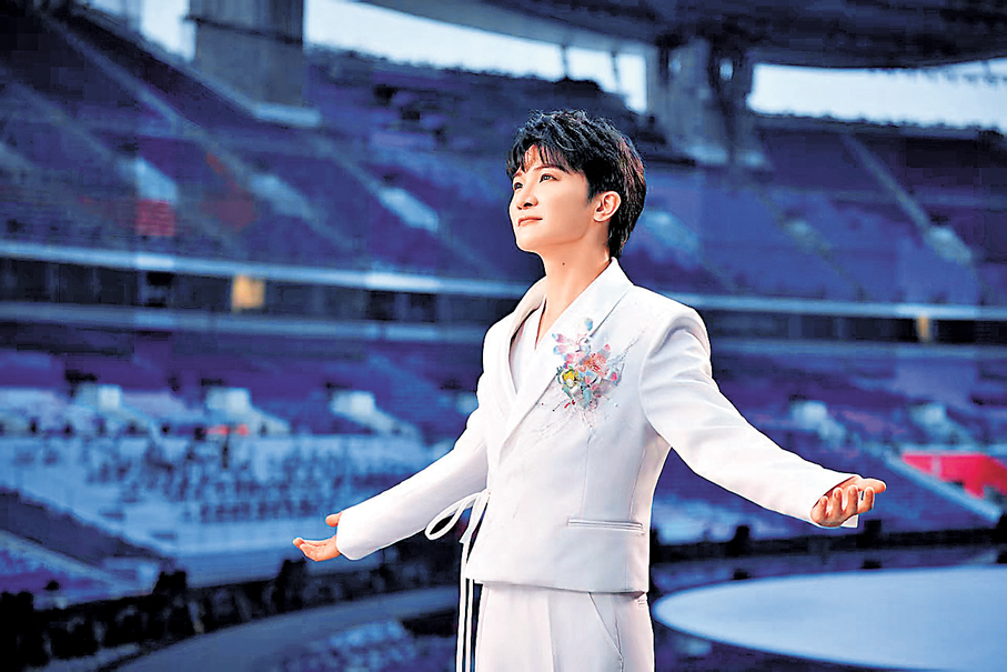 香港文匯報訊(記者 胡若璋、敖敏輝、黃寶儀、盧靜怡、李紫妍)9日晚,廣東奧林匹克體育中心內,第十五屆全國運動會主火炬騰空而起,六萬名觀眾的歡呼尚未散盡,一段清澈空靈的歌聲便如晨露滴泉,悄然浸潤了整個場館。「一滴水,一滴、一滴、一滴的水……」 周深的嗓音帶着穿透人心的純淨,在點點手機星光與粼粼舞台水光中流轉迴蕩,將粵港澳三地共赴盛會的熱忱,化作《天海一心》這首直擊心靈的輕柔樂章。這是全運會首次跨越伶仃洋,由粵港澳三地聯合承辦,共同綻放光彩,而周深與單依純攜手演繹的這首開幕式主題歌,恰似一條無形的情感紐帶,將 「同根同源、同心同緣、同夢同圓」 的大灣區記憶,細細編織進每一個音符裏。
