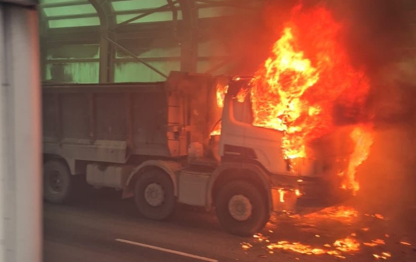 香港文匯報訊(記者 蕭景源)今日(11日)早上9時許,一輛泥頭車沿屯門公路往九龍方向駛至近青田交匯處時,車底突然冒煙起火,火勢迅速蔓延,司機大驚將車停泊路邊逃出車廂,未幾泥頭車車頭即陷入一片火海,不斷湧出濃煙充斥管道,途經駕者紛紛報警。警員趕至封鎖現場,由消防員開喉射水灌救,約11分鐘後將火救熄,起火原因有待進一步調查確定, 初步無人受傷。