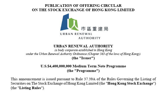 市建局在今年6月23日宣布發行30億美元中期票據。該批票據銷售對象只限於向專業投資者。