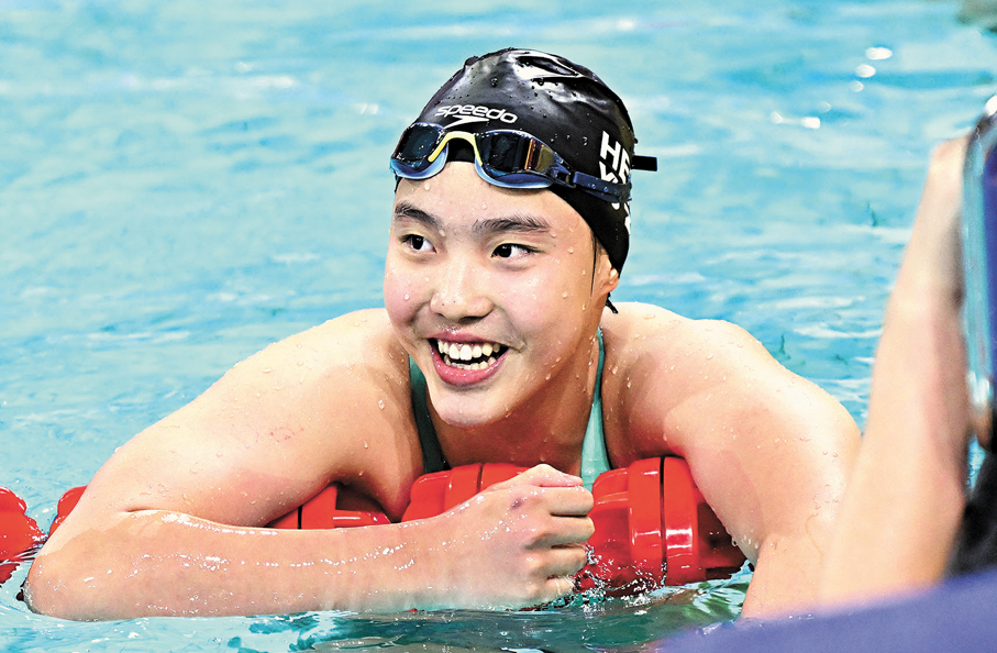 十五運會游泳項目昨日決出四面金牌,依次是男子100米蛙泳、女子100米蝶泳、男子50米蝶泳和女子200米個人混合泳。其中男子100米蛙泳成為焦點賽事。覃海洋以58秒98的成績斬獲金牌,港隊麥世霆以1分0秒53的成績獲得第七。此外,首次參與全運會的13歲小將于子迪驚艷全場,以2分07秒41的女子200米個人混合泳成績摘金,打破了葉詩文在2012年倫敦奧運會上創造的亞洲紀錄。余依婷以2分08秒30的成績獲得銀牌。至於男子50米蝶泳,天津隊王長浩以23秒30成績奪得冠軍。
