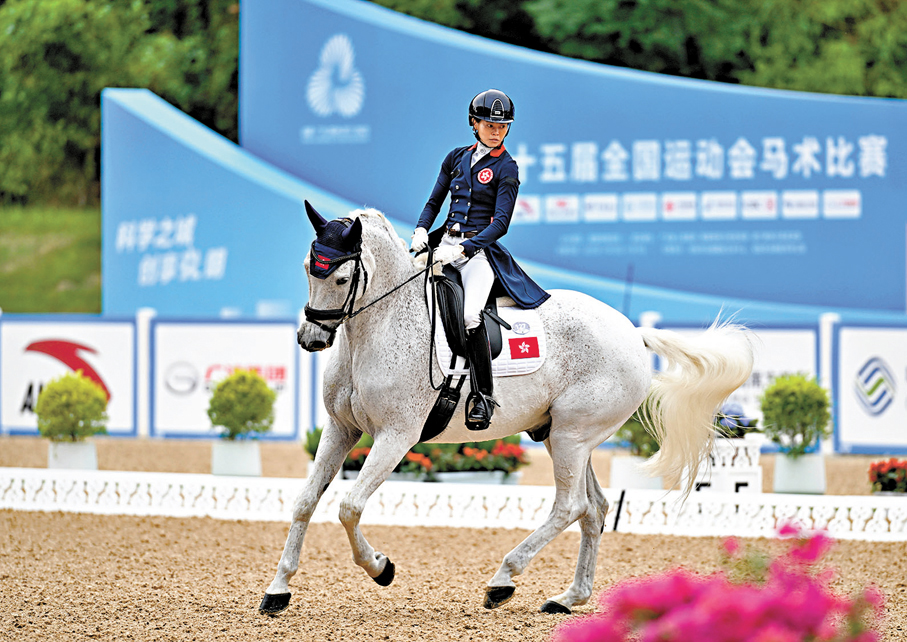 香港文匯報訊(記者 郭若溪 深圳報道)十五運馬術盛裝舞步個人預賽昨日(11日)圓滿結束,新疆隊選手劉濤以出色表現斬獲預賽首名,廣東隊黃焯欽、上海隊徐墨菲緊隨其後分獲二、三名。港隊老將何苑欣憑藉穩定發揮,以66.853分位列第五,成功晉級決賽,12強人馬組合將於今日同台競技,向金牌發起衝擊。