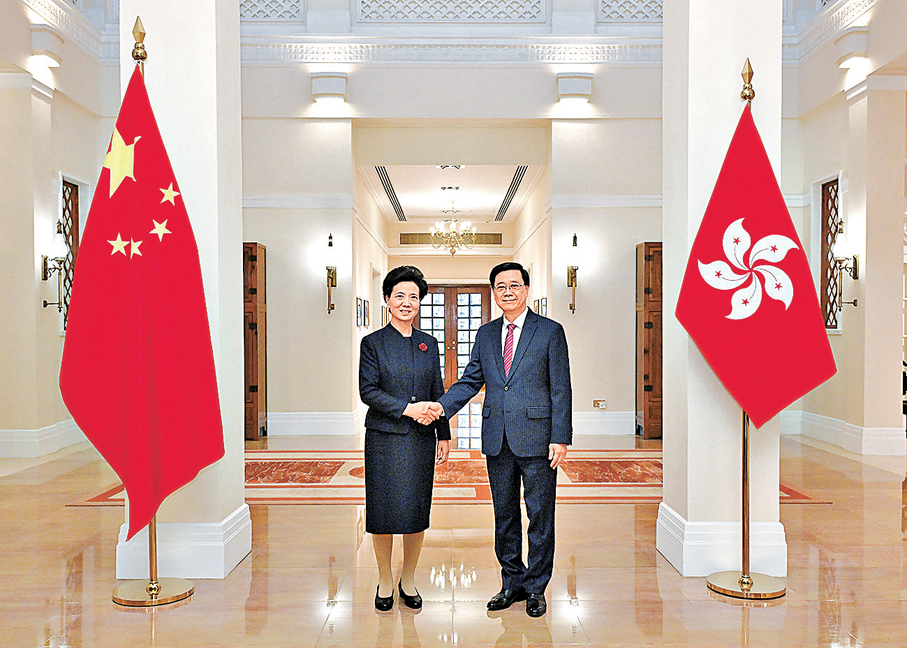 香港文匯報訊 特區行政長官李家超昨日(11日)在禮賓府歡迎國務委員諶貽琴率團到港,考察第十五屆全國運動會(十五運會)香港賽區的競賽設施和項目,並匯報了香港籌辦十五運會、十二屆殘疾人運動會暨第九屆特殊奧林匹克運動會(殘特奧會)和加強粵港澳大灣區體育合作等工作。隨團到港的國家體育總局局長高志丹亦有出席,特區政府的出席官員包括政務司司長陳國基、文化體育及旅遊局局長羅淑佩和全國運動會香港賽區統籌辦公室主任楊德強。