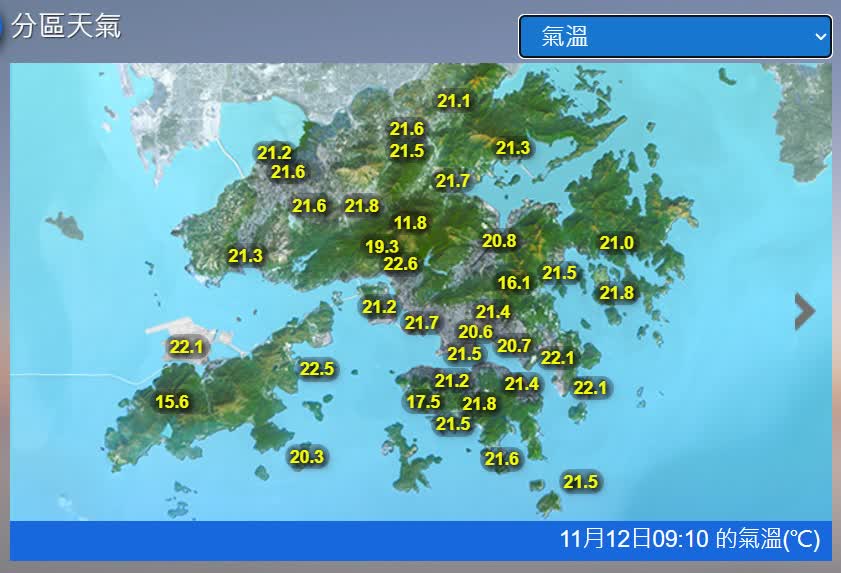 受東北季候風影響,廣東沿岸今日(12日)風勢頗大,海有湧浪,預料較乾燥的季候風會在本周後期持續影響華南,該區天色好轉,早上稍涼。而一股強烈東北季候風會在下周初抵達華南沿岸,該區天氣顯著轉涼。此外,熱帶氣旋鳳凰會在今日上午八時,集結在高雄之西南約170公里,預料向東北移動,時速約10公里,移向台灣一帶並逐漸減弱。