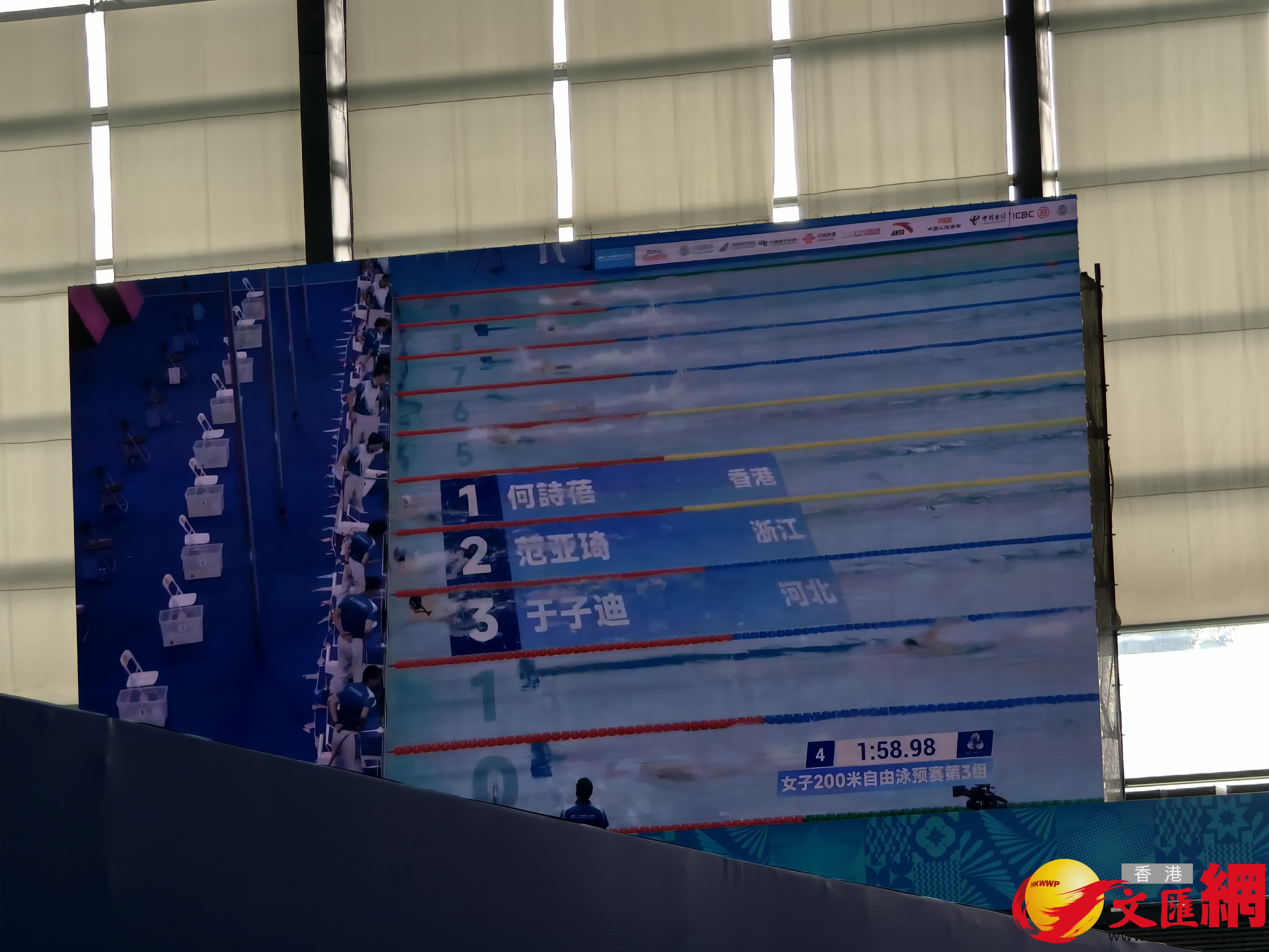 (香港文匯網記者李望賢、胡永愛、石華)12日上午,本屆全運會香港奪金希望之一、「女飛魚」何詩蓓12日早上首度登場,出戰女子200米自由泳初賽,何詩蓓排在第3組出賽,以1分58秒98的成績,總排名第三順利晉級。晚上其將出席8時4分展開的半決賽,爭取躋身13日晚上7時13分進行的決賽。馬紫玲以2分00秒78的成績卡位晉級。