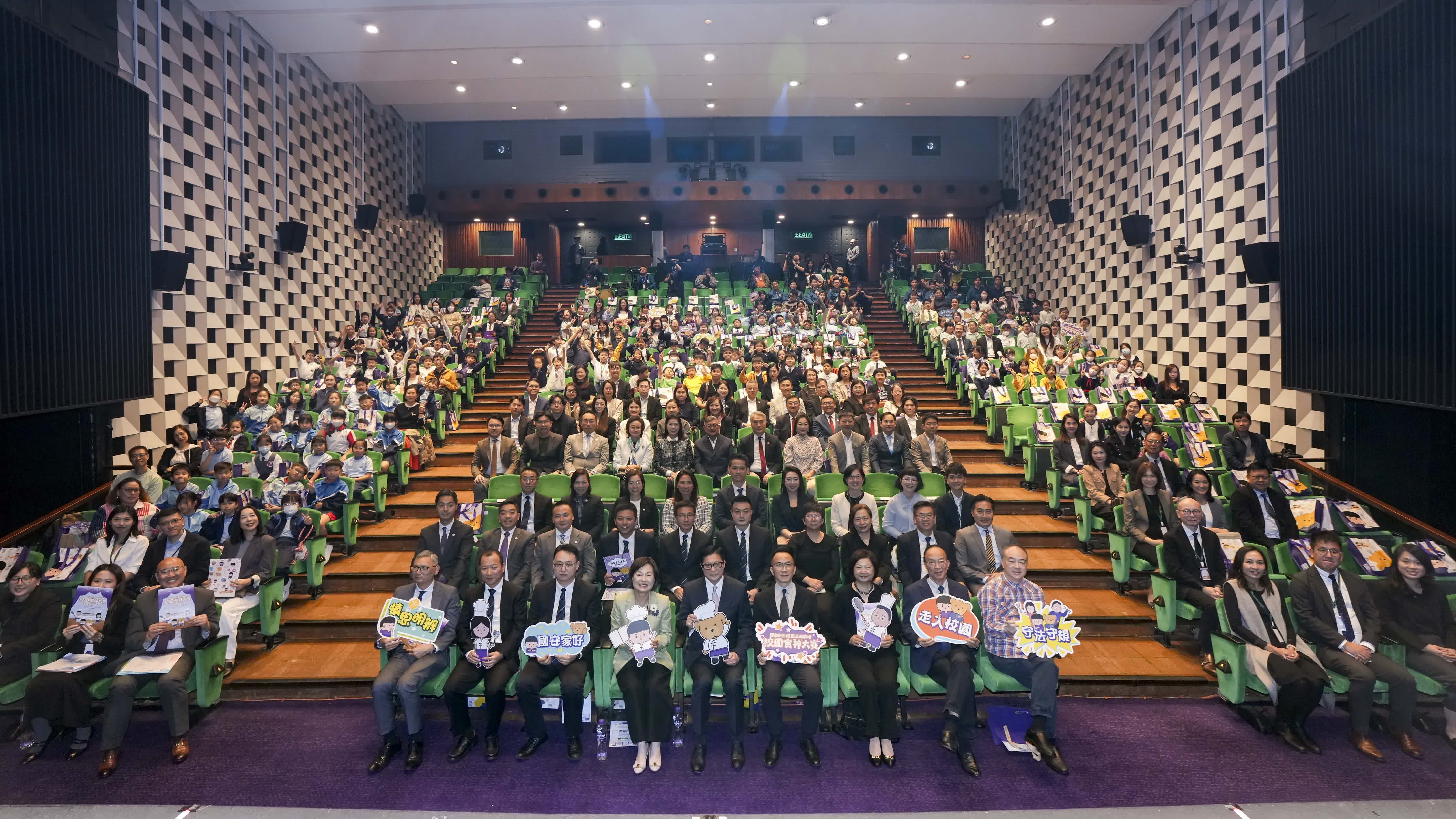 香港文匯報訊 國家安全校園互動劇場《校園食神大賽》昨日(11日)舉行啓動禮及首演,6間小學近約400位小學生、校長、老師和嘉賓出席。互動劇場由保安局主辦,並得到教育局支持,由專業劇團透過《安仔與熊仔》活潑生動的故事和互動形式向小學生進行國家安全教育,提升學生主動自覺維護國家安全的意識。保安局局長鄧炳強致辭時表示,國家安全的關鍵概念應從小學習,未來幾個月互動劇場會到全港各區至少20間小學演出。