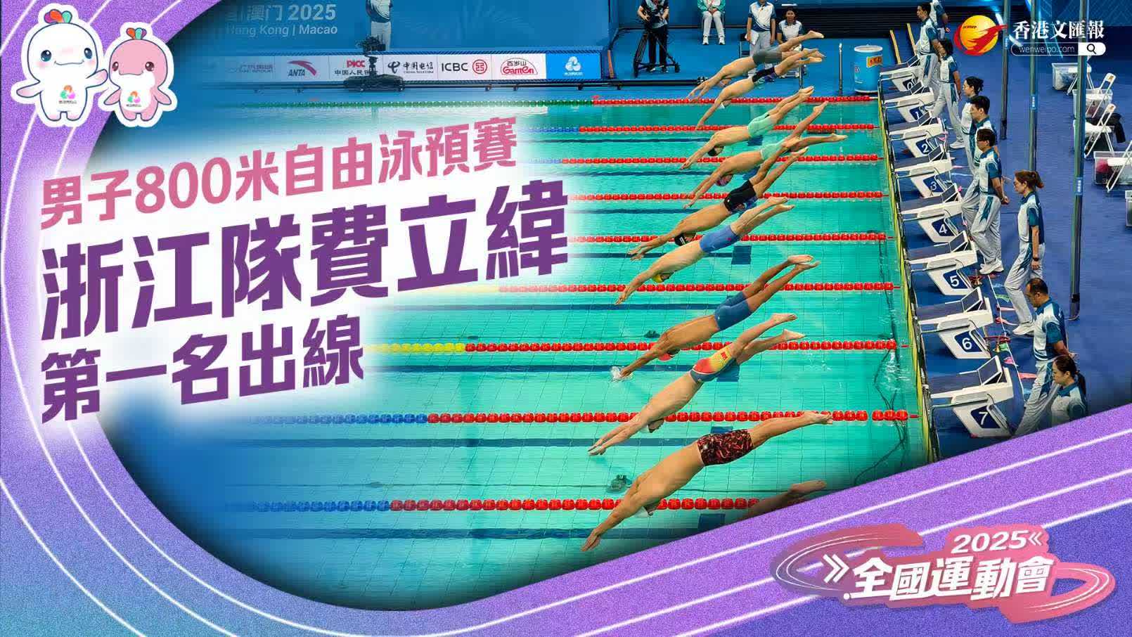 (香港文匯網記者李望賢、胡永愛、石華)男子800米自由泳預賽,浙江隊費立緯以7分59秒78獲第一的成績出線,山東隊張展碩與劉培鑫分列第二、第三。