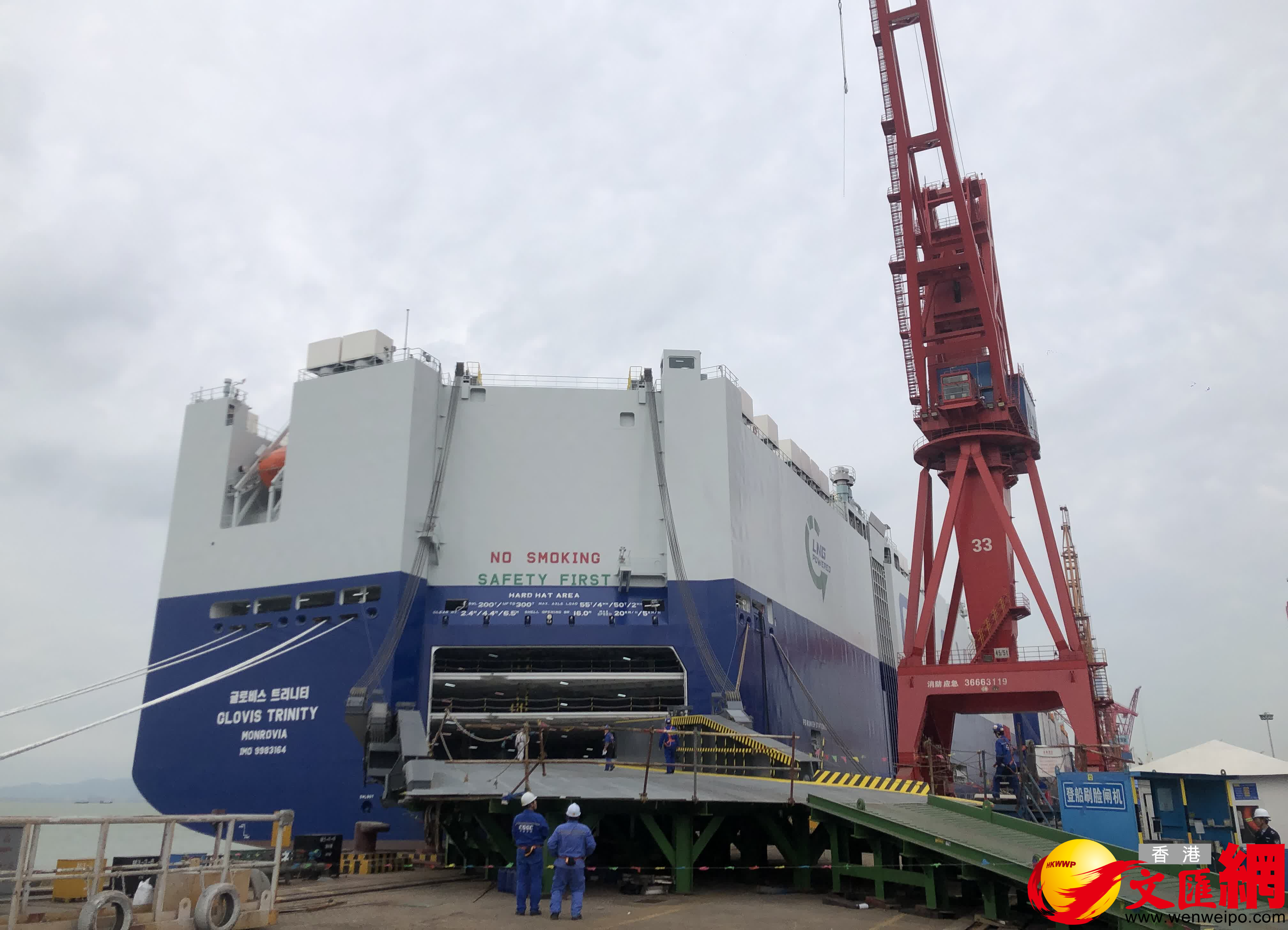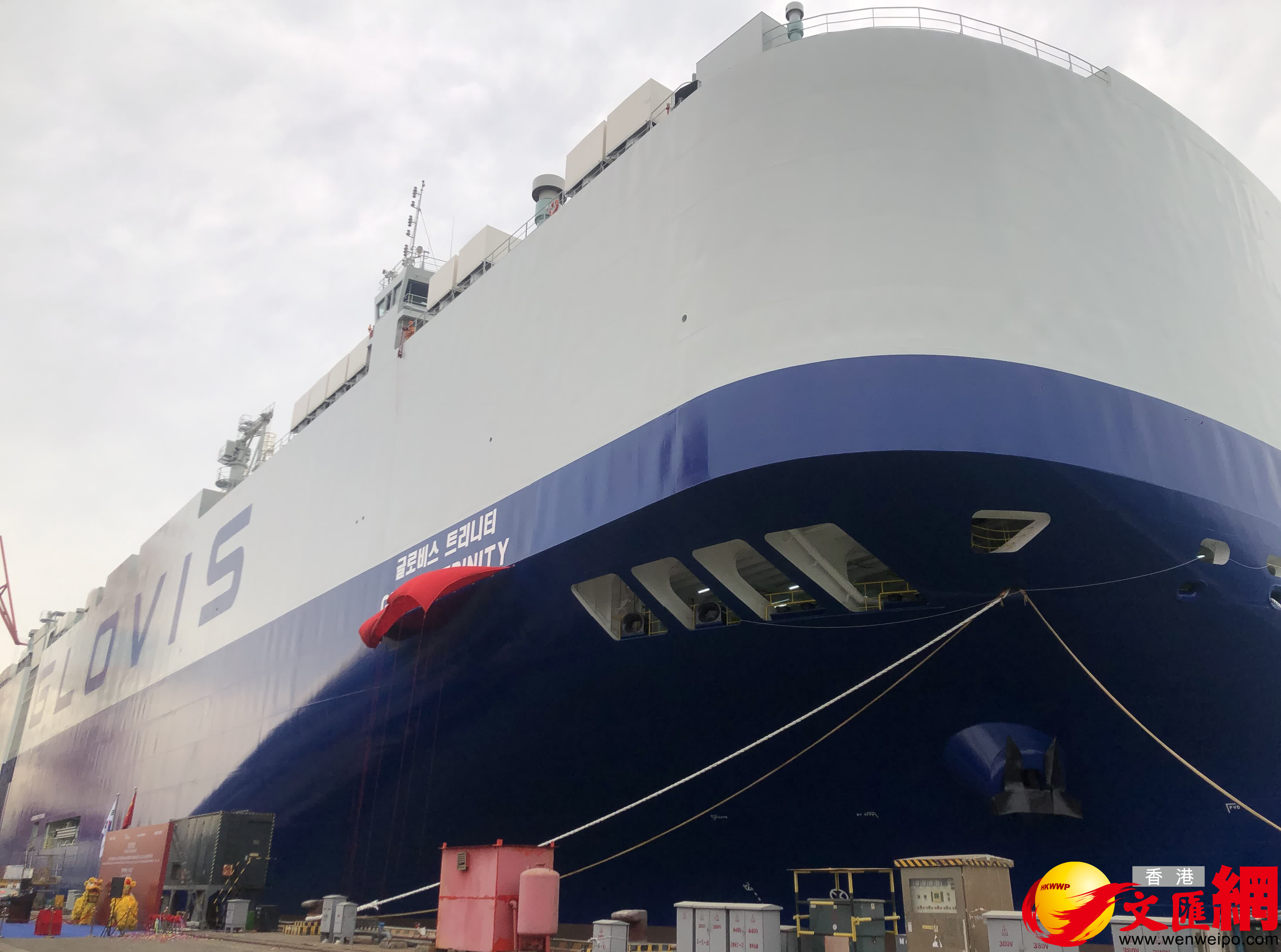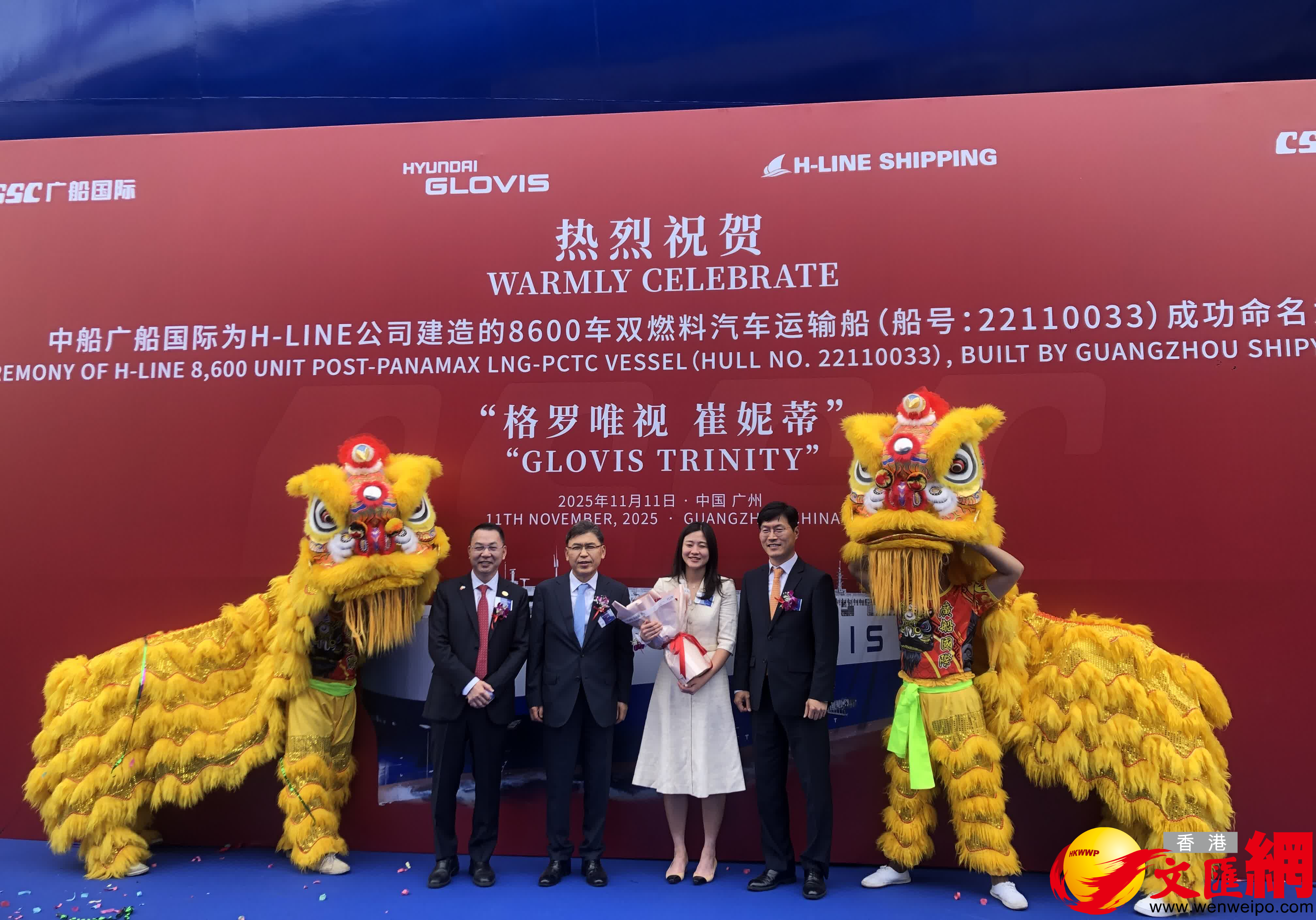 (香港文匯網記者 方俊明)「灣區造」雙燃料汽車運輸船備受國際市場青睞!昨日(11日),中船廣船國際聯合中船貿易為韓國H-LINE航運公司建造的「8600車雙燃料汽車運輸船」在廣州命名交付,標誌着該船東訂造的7艘汽車運輸船項目圓滿收官。據悉,韓國船東訂造的7艘大型船舶,單艘最大可承載8600輛汽車,並配備了先進的智能船舶系統與多項節能減排技術,展現了中國造船創新技術的雄厚實力,助力全球航運業綠色低碳轉型。