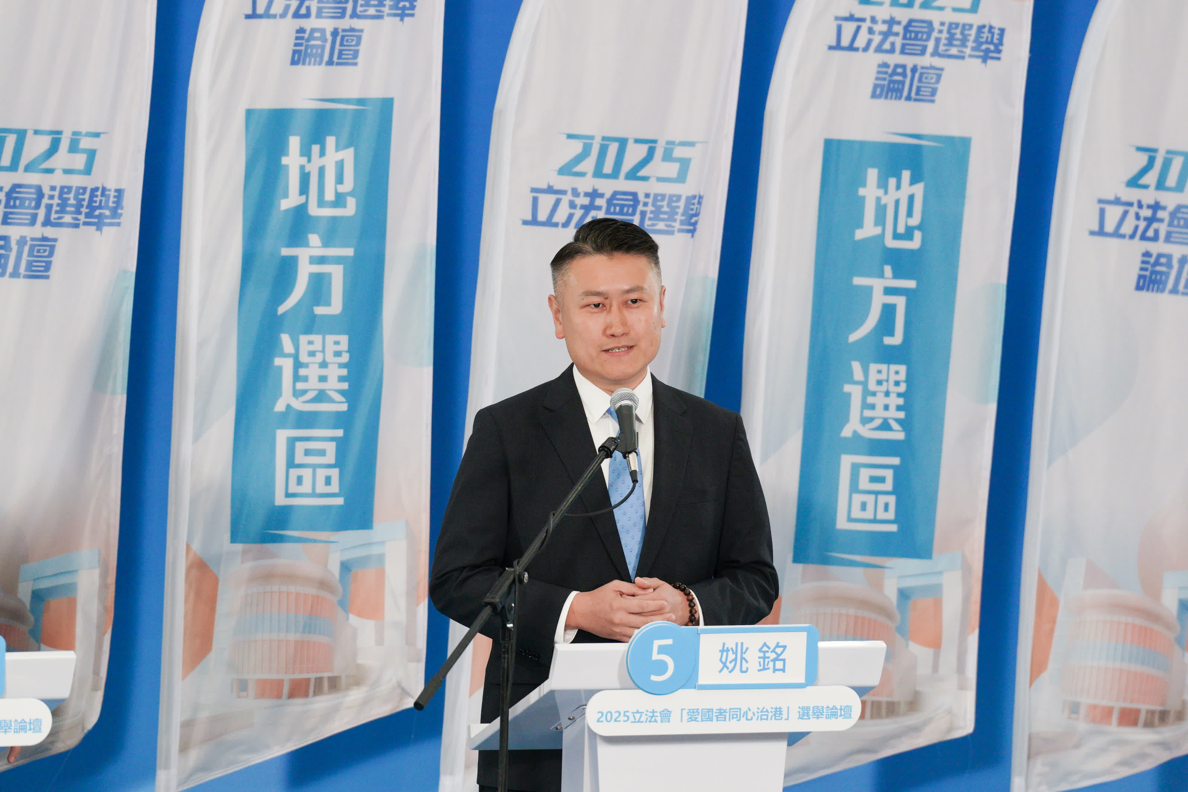 (大公文匯全媒體報道)香港第八屆立法會選舉將於12月7日舉行投票。特區政府於11月11日至11月30日舉辦共39場2025立法會「愛國者同心治港」選舉論壇,邀請各地方選區、功能界別和選舉委員會界別的候選人向其選區或界別的選民和市民介紹其政綱理念及對多項社會議題的看法。今日(12日)上午9時30分,「新界北地方選區論壇」在天瑞體育館舉行,區內5位候選人,1號譚鎮國、2號曾勁聰、3號沈豪傑、4號廖子聰及5號姚銘出席。