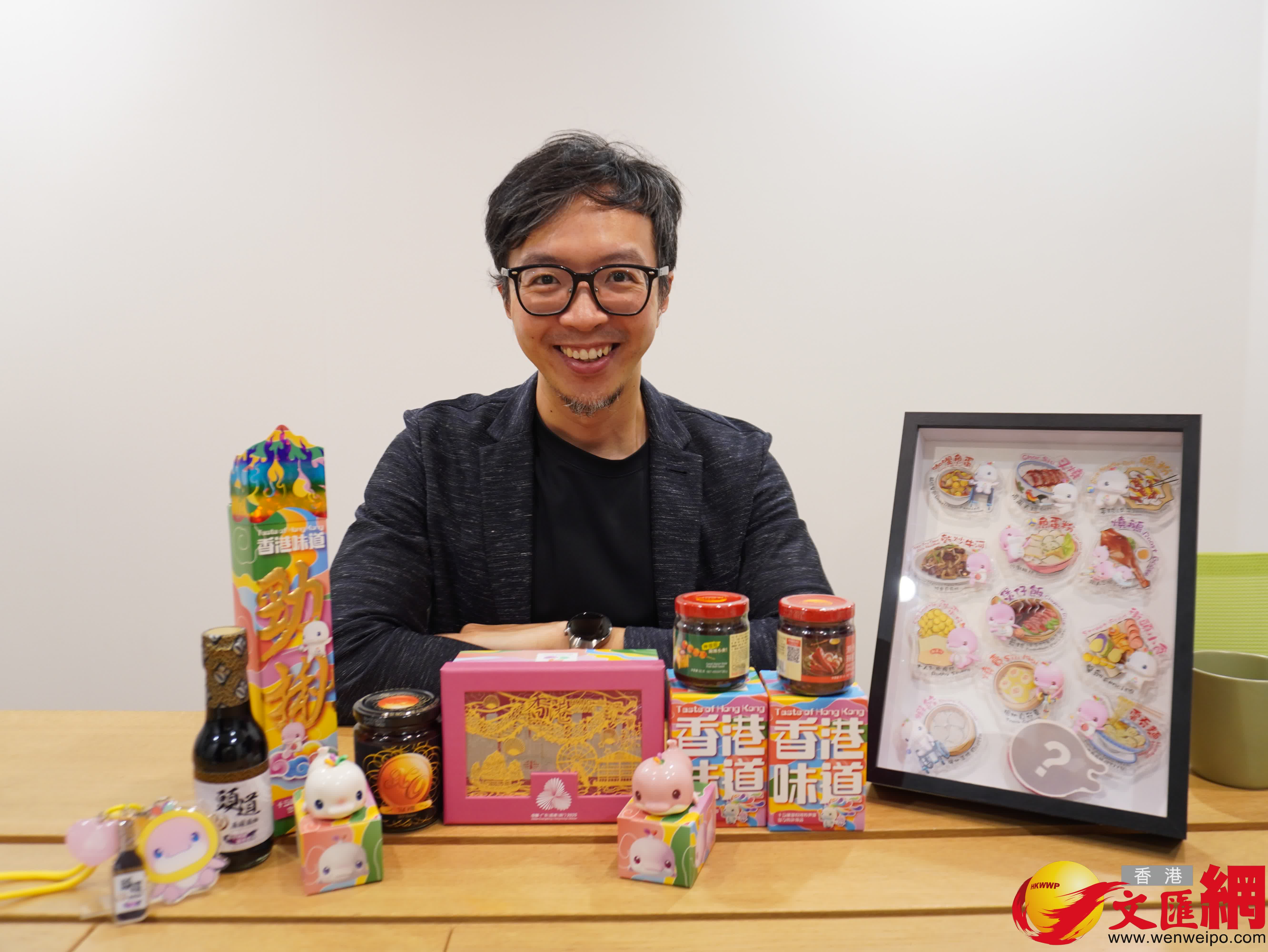 Joe介紹道:「五彩祥雲象徵大灣區多元文化的交融,而傳統文化中的祥雲也寄寓着如意吉祥的美好祝願。」此次創作的核心,同樣立足於「香港——美食之都」的獨特身份。Joe將叉燒、煲仔飯、雞蛋仔等深入民心的地道滋味,提煉為極具代表性的文化符號,並巧妙融入盲盒設計之中,讓「香港味道」不僅可品嘗,更成為可收藏的城市記憶。設計中最富巧思的一筆,莫過於讓擊劍與街頭小食在磁石貼上相遇。修長的劍尖靈犀一點,恰如其分地串起一粒魚蛋,構成一幅動靜結合、橫跨體育與日常的幽默畫卷。