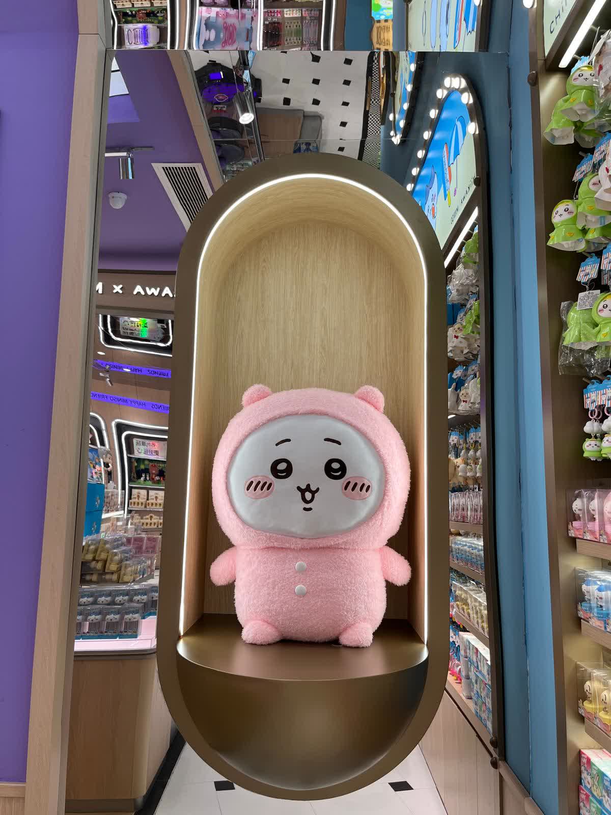 至於店家裝潢以淺藍色簡單木系風為主,1樓主要是各種IP,2樓集中美妝類及日用品等。全店亦有如一個夢幻IP樂園,最吸睛打卡位首推跨越兩層的淺藍色樓梯,不同IP海報燈箱配合天花板的大鏡,可謂店內人氣打卡位;至於L1層收銀櫃位對出的巨型飛船,有品牌原創IP大大隻吉福特熊、CHIIKAWA公仔疊疊塔坐鎮,也吸引不少人坐上這這首飛船投入IP好友營。此外,商場L1中庭也有陳設如同城堡的快閃店,放滿不同IP公仔牆,將營業至明年初。