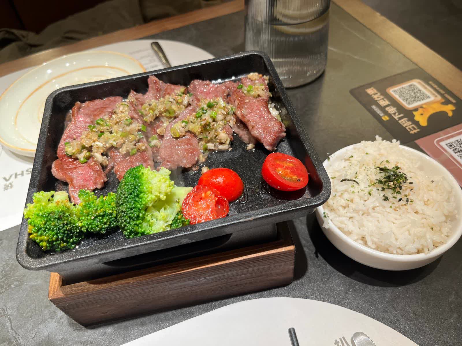 各位朝聖前可先嘆個靚靚午餐醫肚,同樣在海雅繽紛城L1層的西餐廳「一沙一城.岩烤牛扒」供應工作午餐至下午2時,有鹽葱醬牛排、有飯有南瓜湯,大眾點評團購¥40有找價格超級親民,食飽飽能量滿滿,牛排有鐵板邊燒邊食保持熱度,牛肉滋滋作響肉香四溢。而店家主打牛排、意粉等西式美食,二人晚餐由¥200至¥300左右,價錢公道。