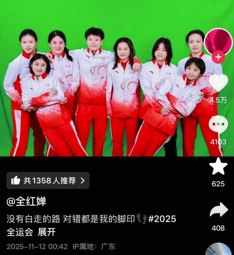 昨日(11月12日)凌晨,全紅嬋在社交媒體平台上曬出多張十五運會現場照片,其中包括她和隊友合影、頒獎儀式以及大量全運會個人花絮內容。