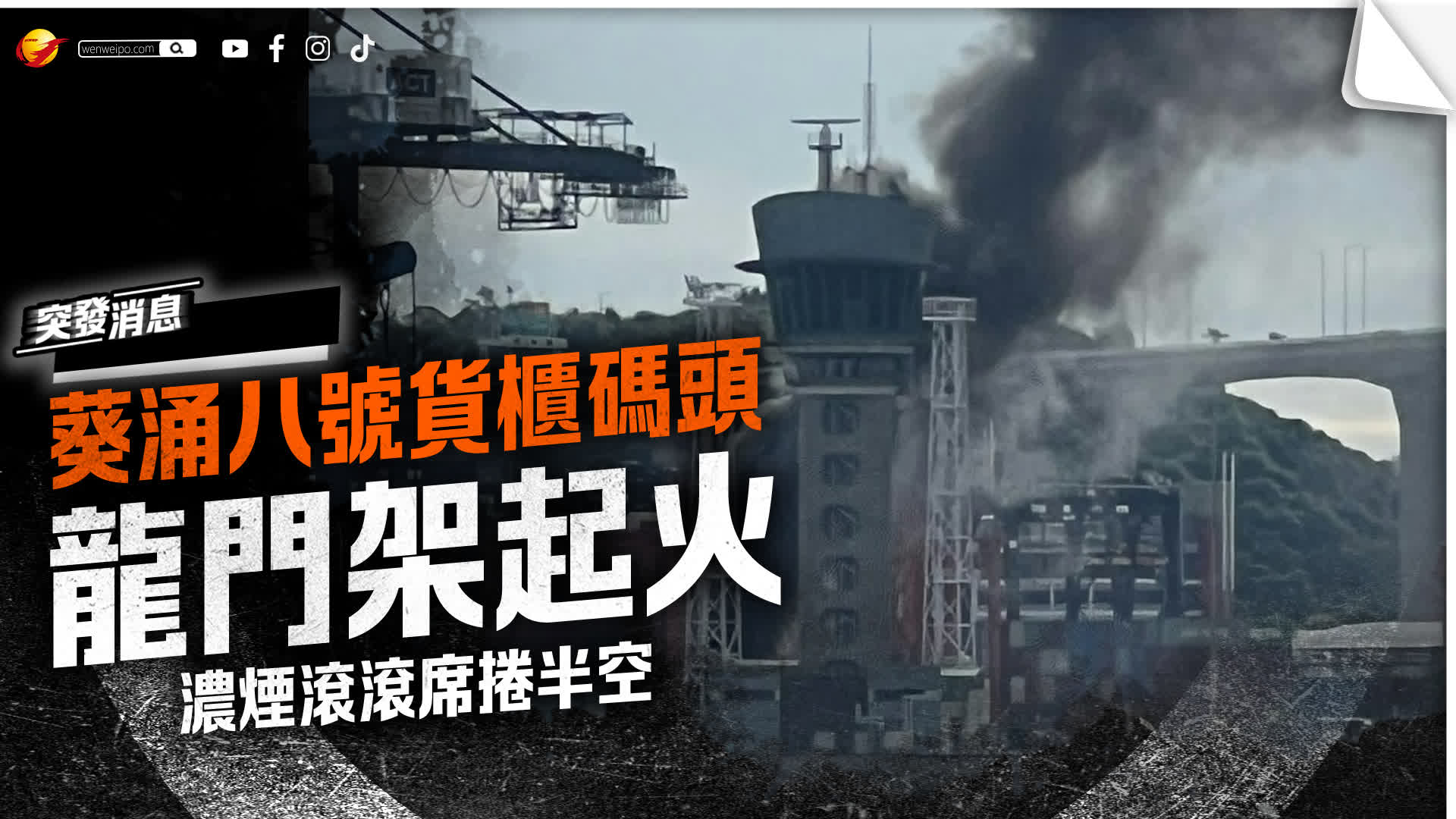 今日(13日)上午9時13分,葵涌八號貨櫃碼頭近中遠國際貨櫃碼頭,一個俗稱「龍門架」的吊機起火冒煙。消防人員接報後趕抵現場,出動一條喉及一隊煙帽隊進行灌救,約在17分鐘後將火勢撲滅,期間在場人士毋須疏散。