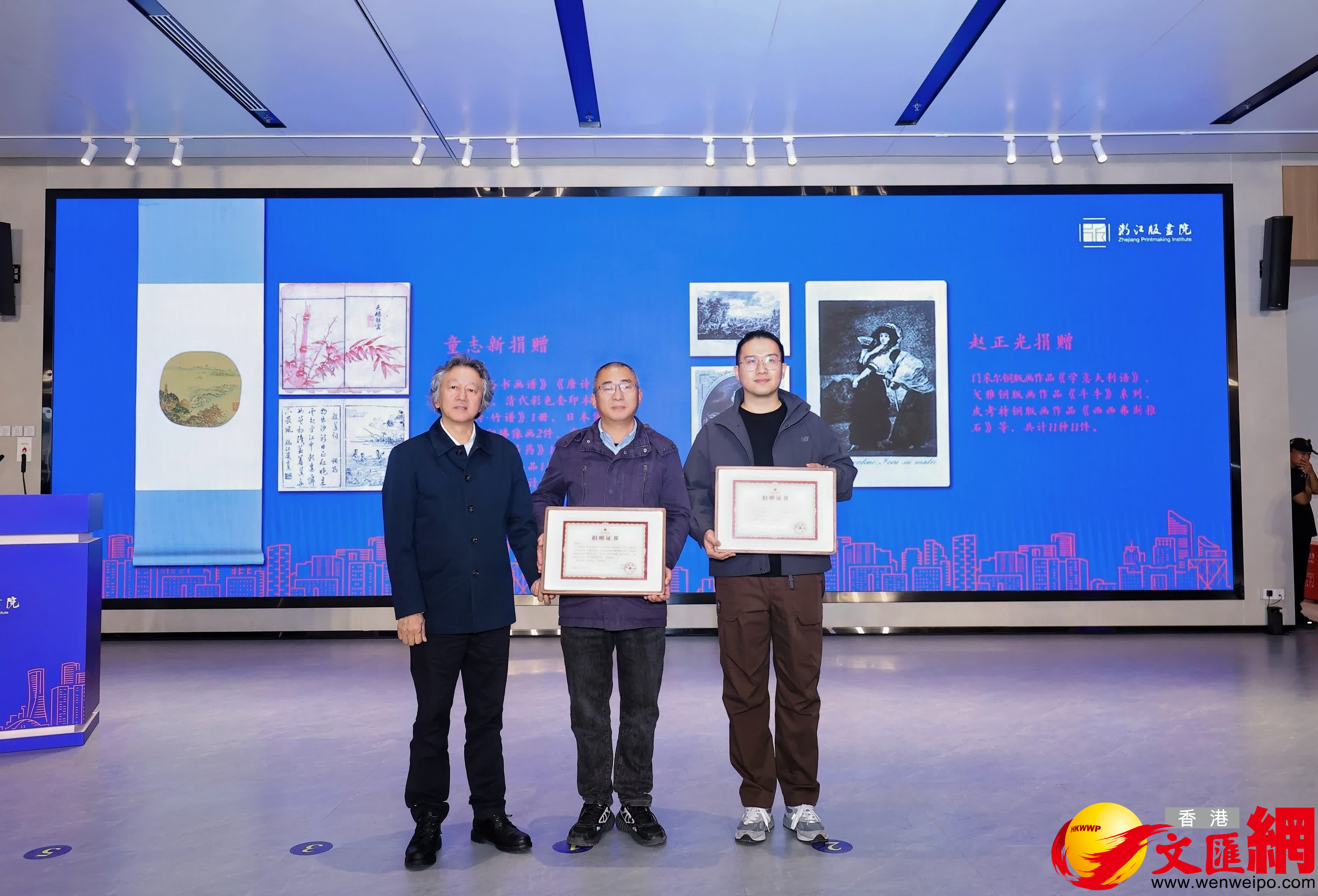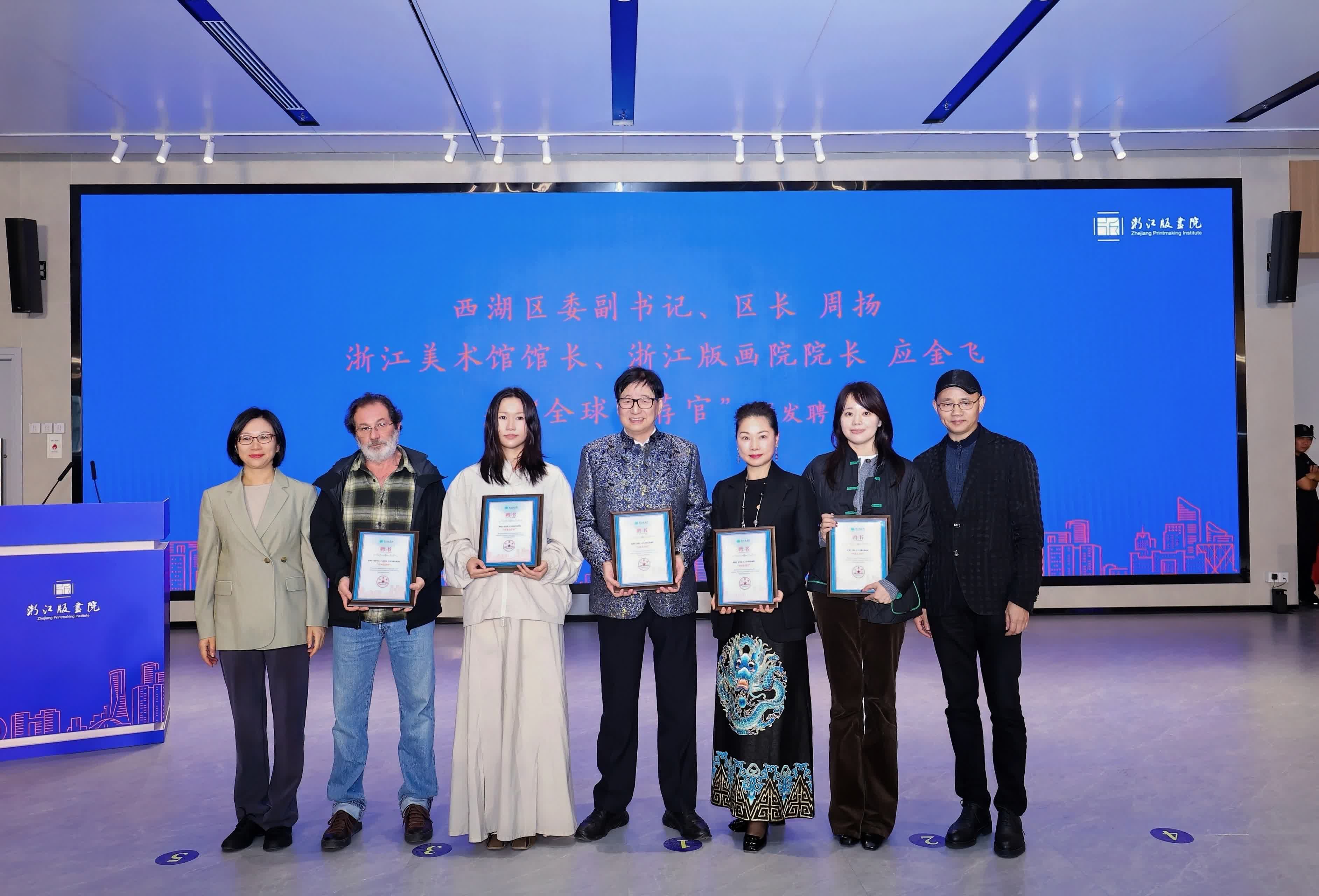 儀式上,收藏家童志新、中青年學者趙正光向浙江版畫院捐贈了銅版、木板、水印版作品19種26件。中國工藝美術大師、國家級非物質文化遺產銅雕技藝代表性傳承人朱炳仁,賽麗正宏集團有限公司董事長、浙江賽麗美術館創始人夏賽麗,原創電子音樂唱作人、法國藝術與文學騎士勳章獲得者尚雯婕,浙江人民出版社綜合出版中心主任、文化類短視頻賬號「眉的說」主理人錢叢,藝術家、教育家、策展人阿薩杜爾·馬克洛夫教授受聘為浙江版畫院「全球藝薦官」。