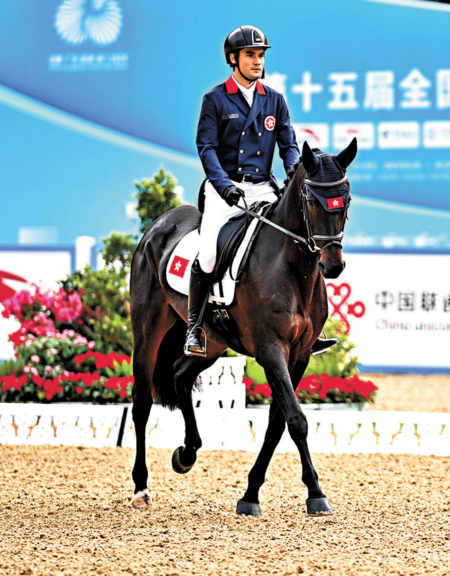 11月13日,第十五屆全運會馬術三項賽團體決賽暨個人資格賽在深圳開賽。在盛裝舞步項目角逐中,江蘇隊以總罰分91.9分的成績領跑團體賽,廣東隊騎手梁銳基搭檔馬匹「凱麗」以28.0分的總罰分暫列個人資格賽第一。香港隊蘇昱軒以35.4的罰分排名16,何誕華、吳蓓華分別排名22和24。