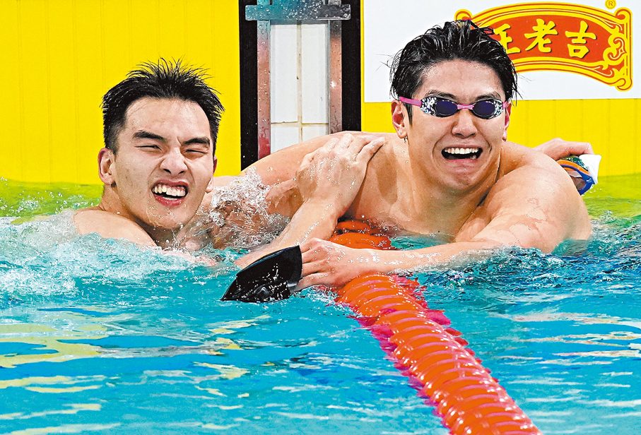 麥世霆日前在男子100米蛙泳準決賽游出1分00秒44刷新香港紀錄,狀態大勇,惟最終在決賽無緣踏上頒獎台。他轉戰50米蛙泳保持出色發揮,以27秒77取得準決賽第8名,比自己的最佳時間僅慢0.13秒,成功躋身昨晚決賽,與金牌大熱、亞洲紀錄保持者覃海洋繼100米蛙泳後再度同場競逐。
