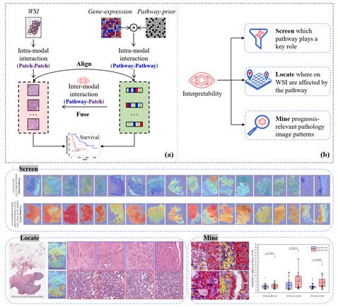 據介紹,癌症生存分析是精準醫學的關鍵環節,它能幫助醫生制定個性化治療方案,但傳統分析方法一直面臨「病理圖像和基因表達之間細粒度交互不足」的難題。過去的研究當中,僅用基因表達數據或病理圖像單一模態預測生存,往往無法完整反映癌症的複雜機制;部分方法曾嘗試結合兩種模態,但依然忽略了基因功能網絡與病理圖像區域之間的細粒度關聯,導致預測效果受限。