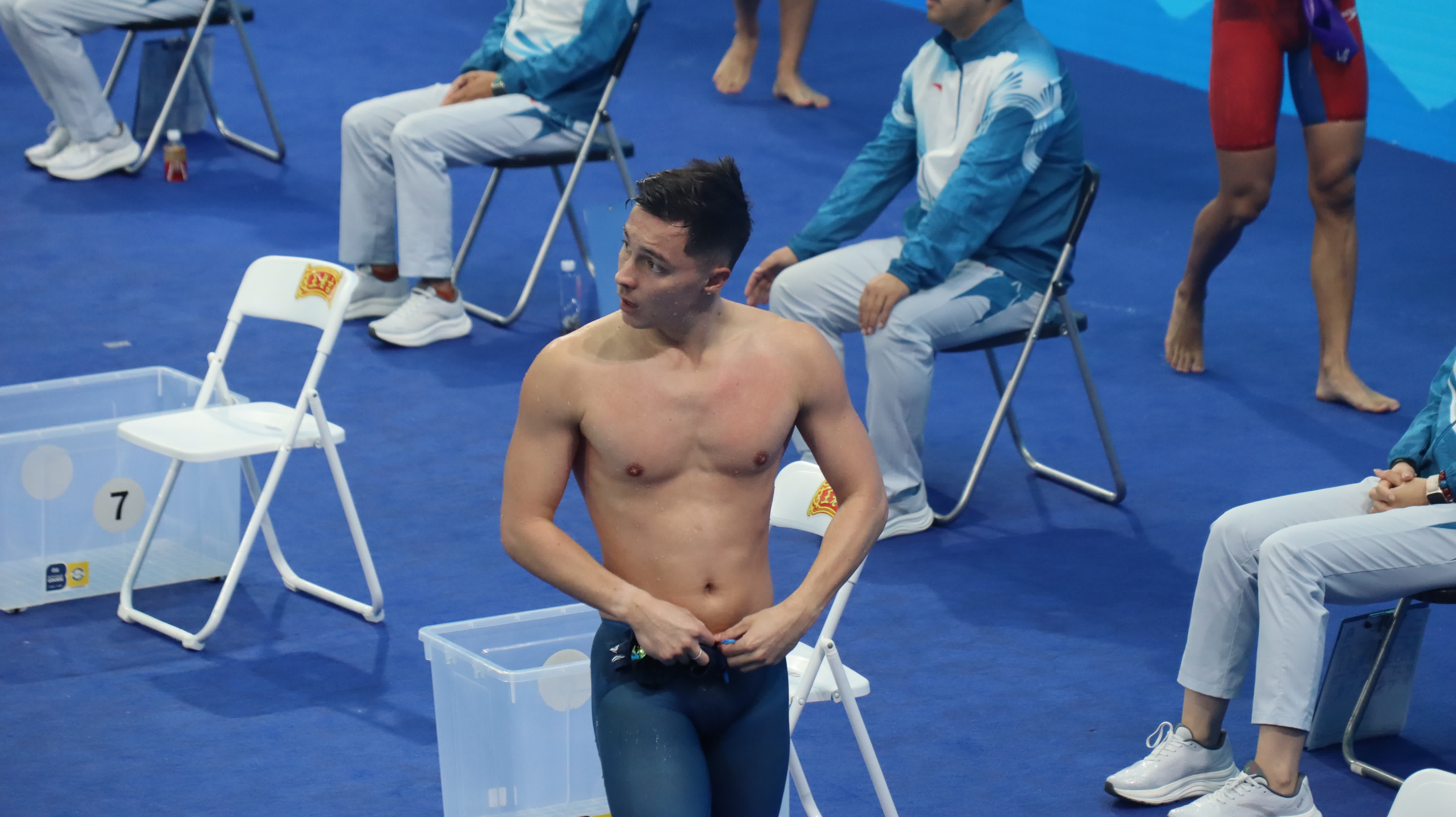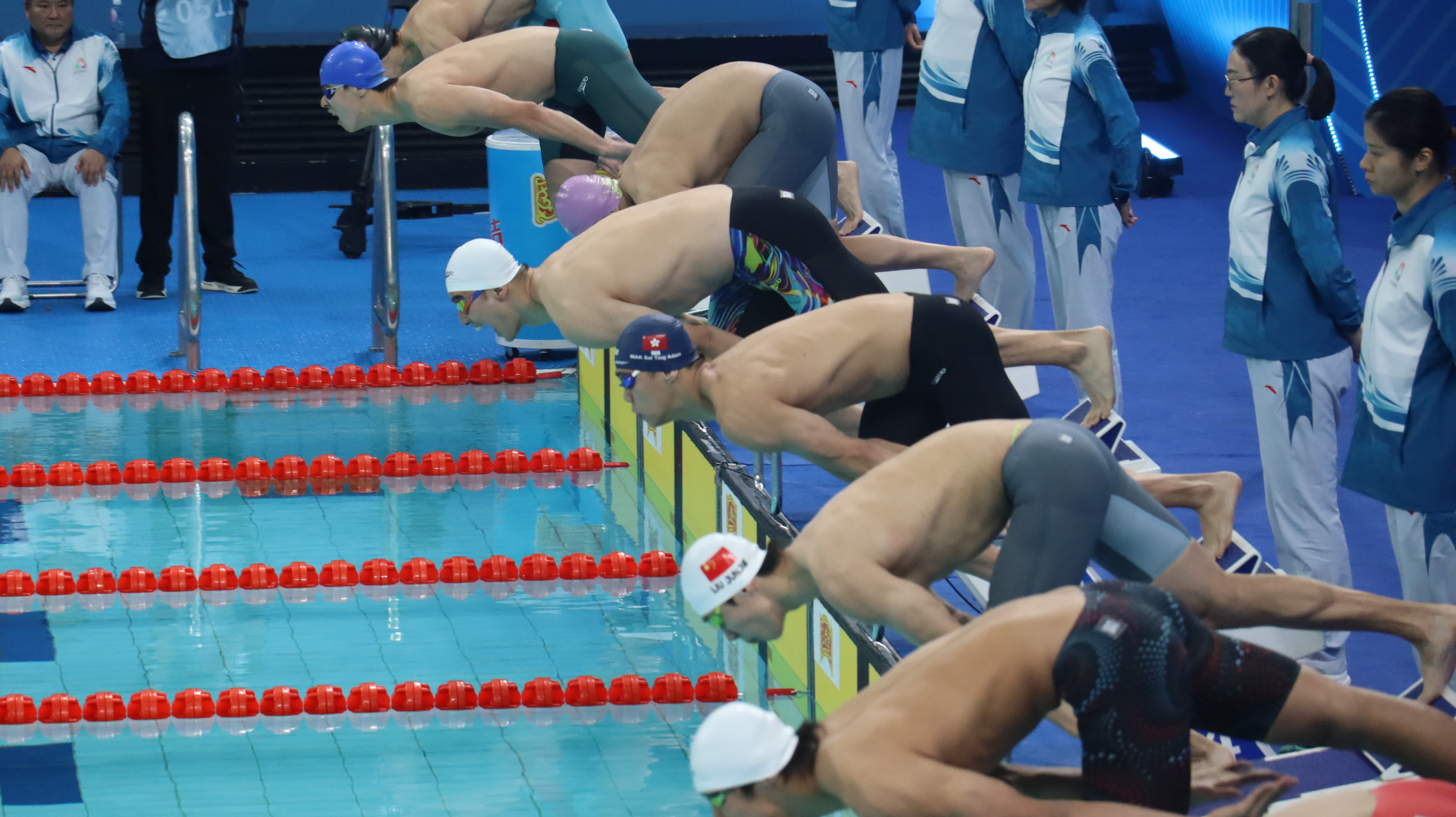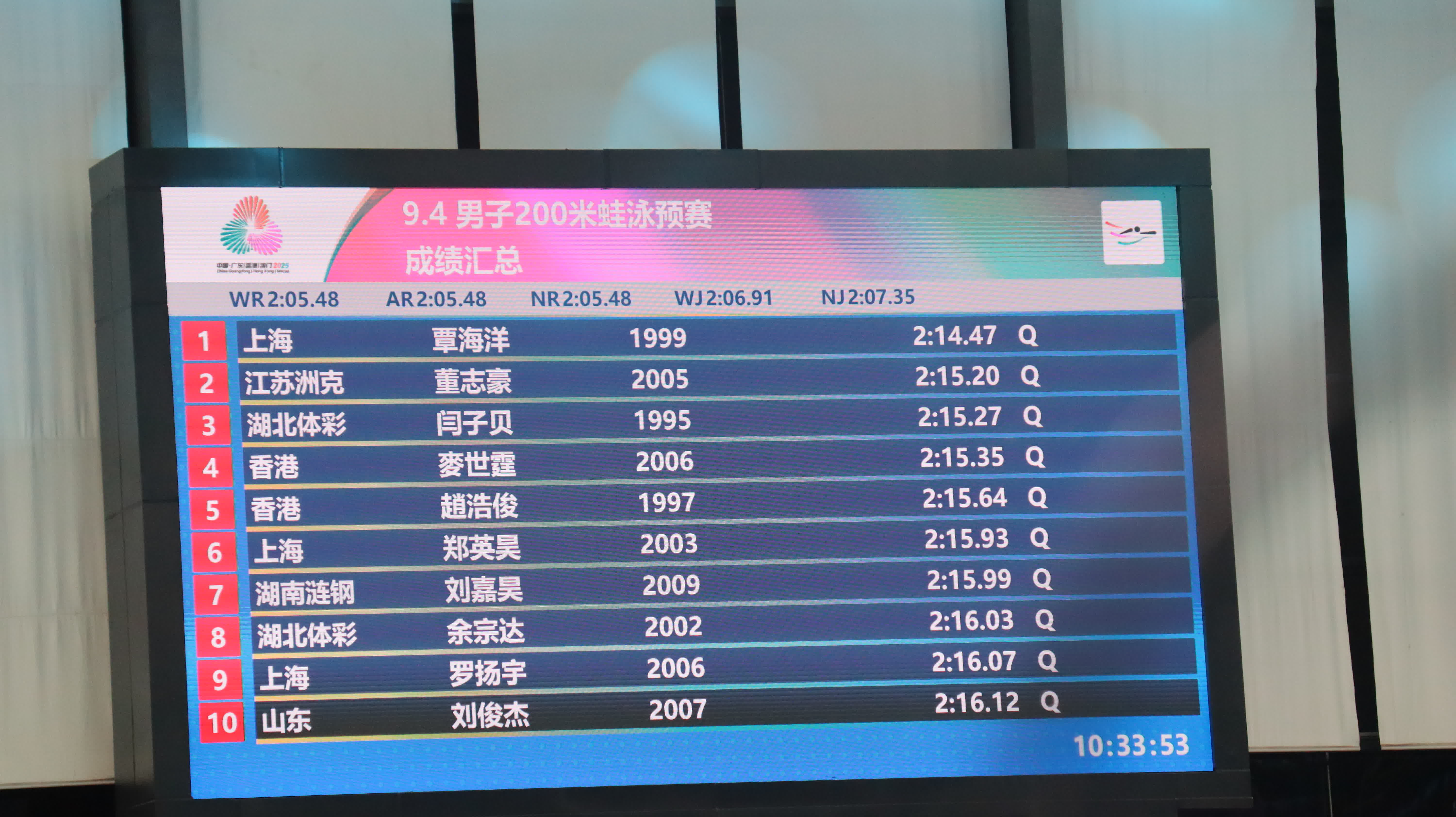 世界紀錄保持者、名將覃海洋展現絕對實力,以2分14秒47的佳績排名預賽第一,強勢晉級。