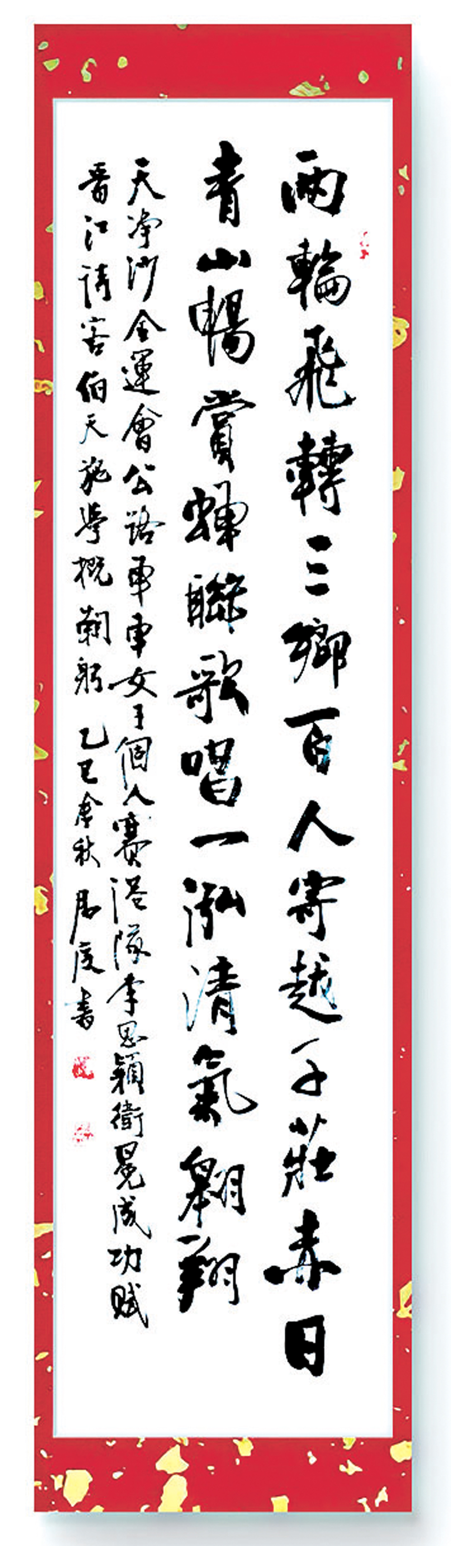 兩輪飛轉三鄉,百人寄越千莊,赤日青山暢賞。蟬聯歌唱,一泓清氣翱翔。