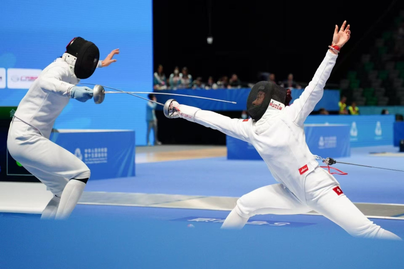 在分組賽5戰全勝的佘繕妡在32強對上山東劍手王小雪,港將初段以2:6落後,佘繕妡及後主動進攻,追成8:8平手,雙方在完成3節比賽後打成10:10 平手,要以「決一劍」分勝負。佘繕妡最終成功頂住壓力,以11:10險勝王小雪殺入16強。