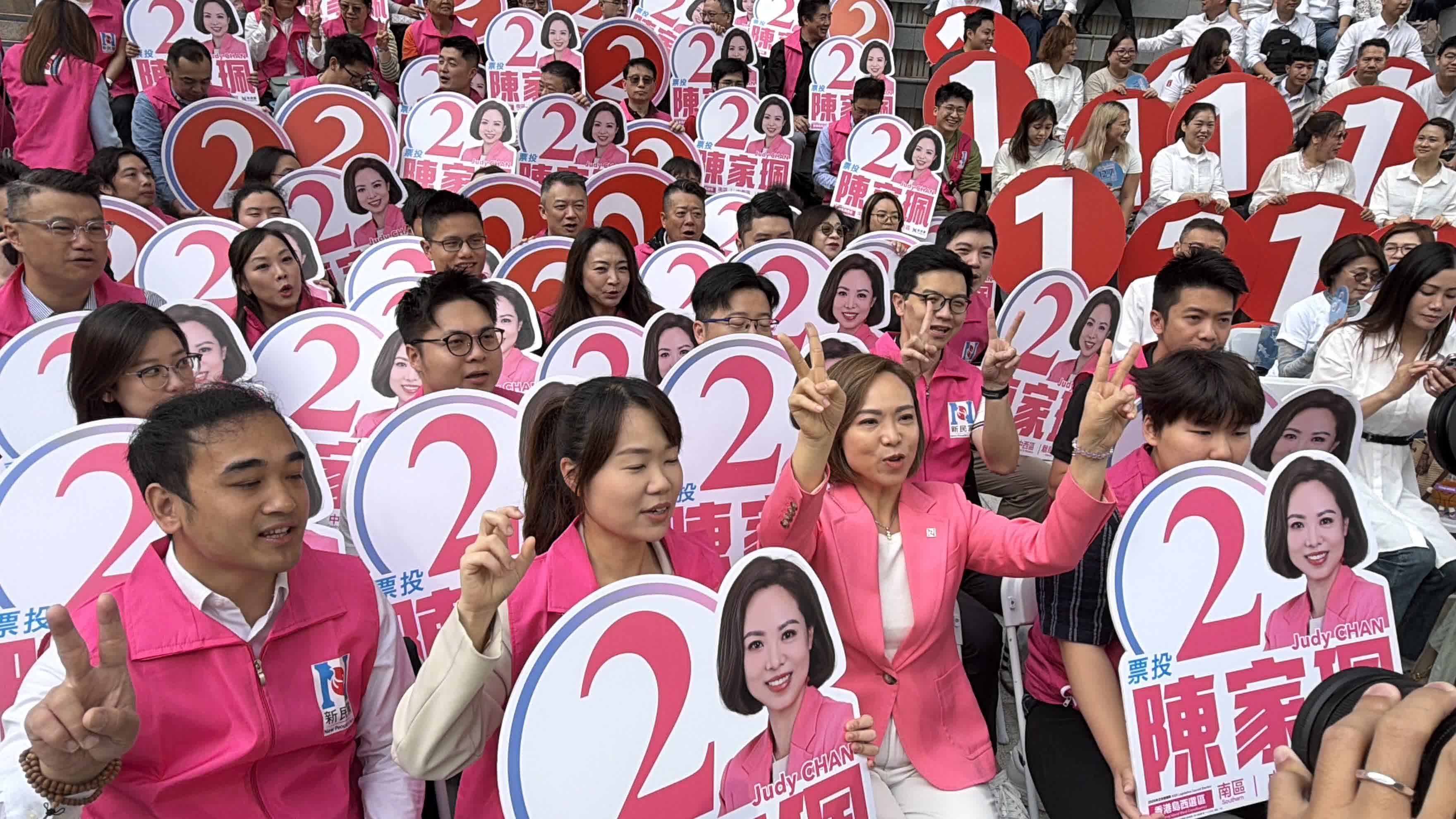 2號候選人現任立法會議員、新民黨成員陳家珮表示,希望未來更多婦女參政議政,打破單一視野的政治文化。她指,過去4年,自己盡心做好立法會工作,共參與26項立法工作,包括《建築物管理條例》《輔助醫療業條例》《強制舉報虐兒條例》等。陳家珮表示,當區十分特別,有國金中心的中環,亦有文化中心的南區,希望未來繼續服務香港。