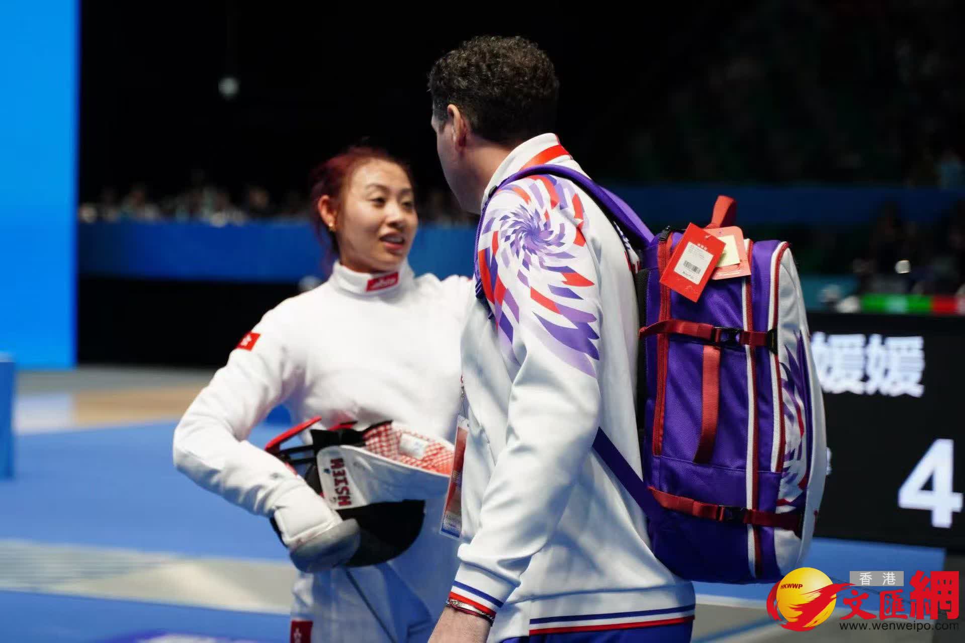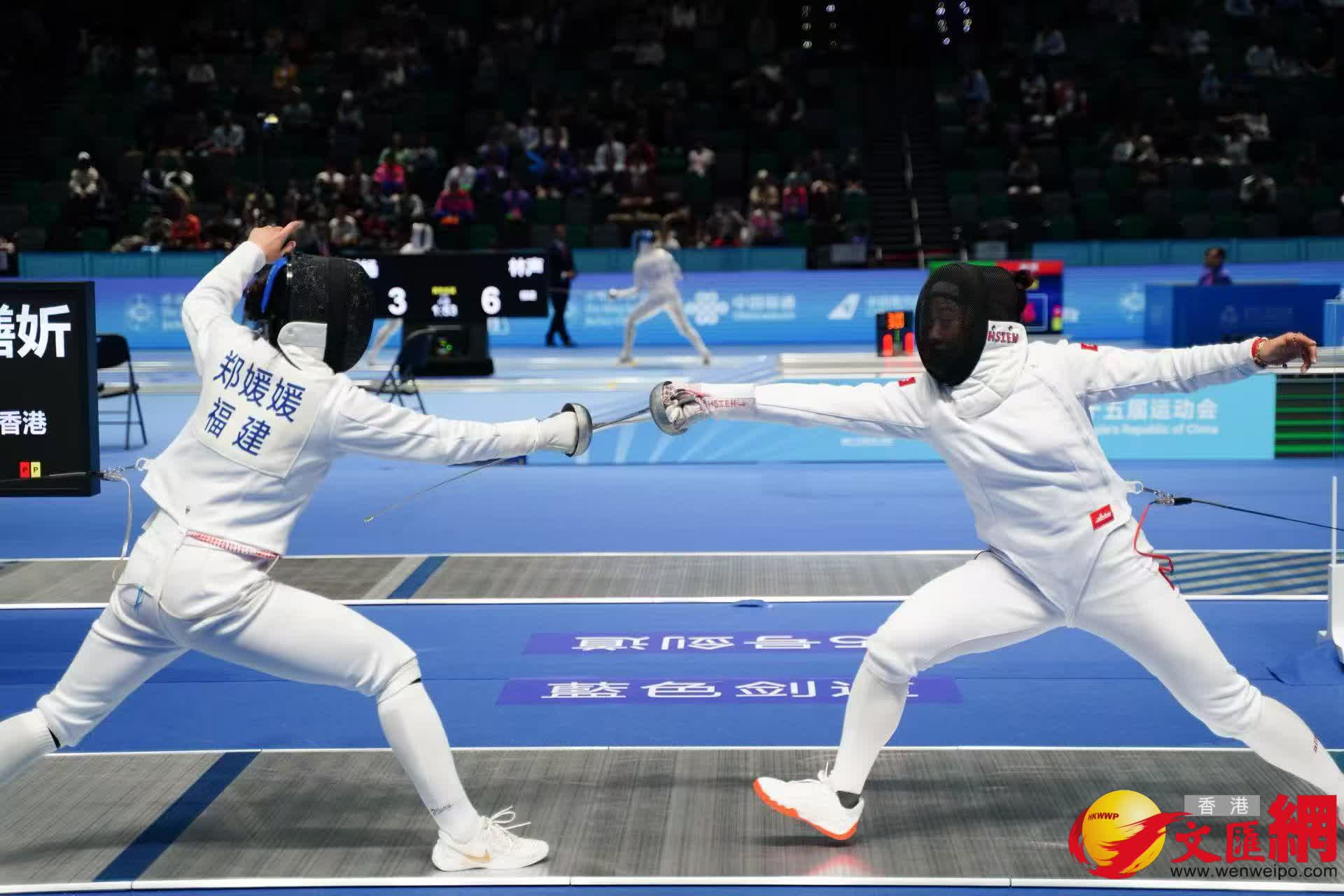 佘繕妡初段與對手緊咬比數,這名港將去到第二節開始發力,連續兩劍刺中對手腿部,其後更用一劍精彩的「轉移刺」避開對方防守得分,把比分拉開至7:4。佘繕妡其後越戰越勇,最終以12:4刺走鄭媛媛殺入8強。