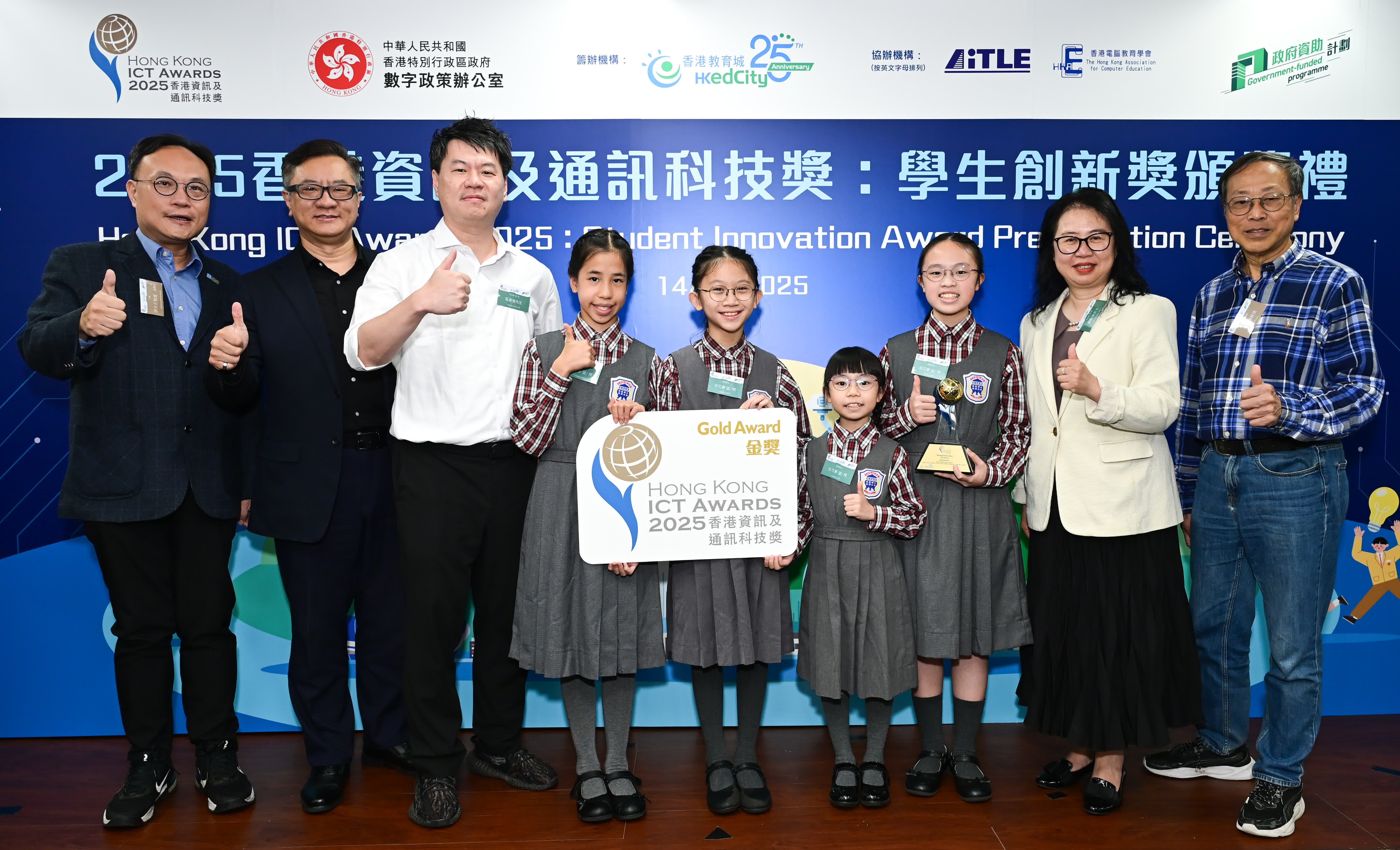 小學組方面,大埔舊墟公立學校團隊憑作品「舌可夢 望/問」(Tonguemon O/Q)獲得「學生創新(小學)金獎」,利用科技促進人體健康,展現小學生以創科技術關懷社區的構思。