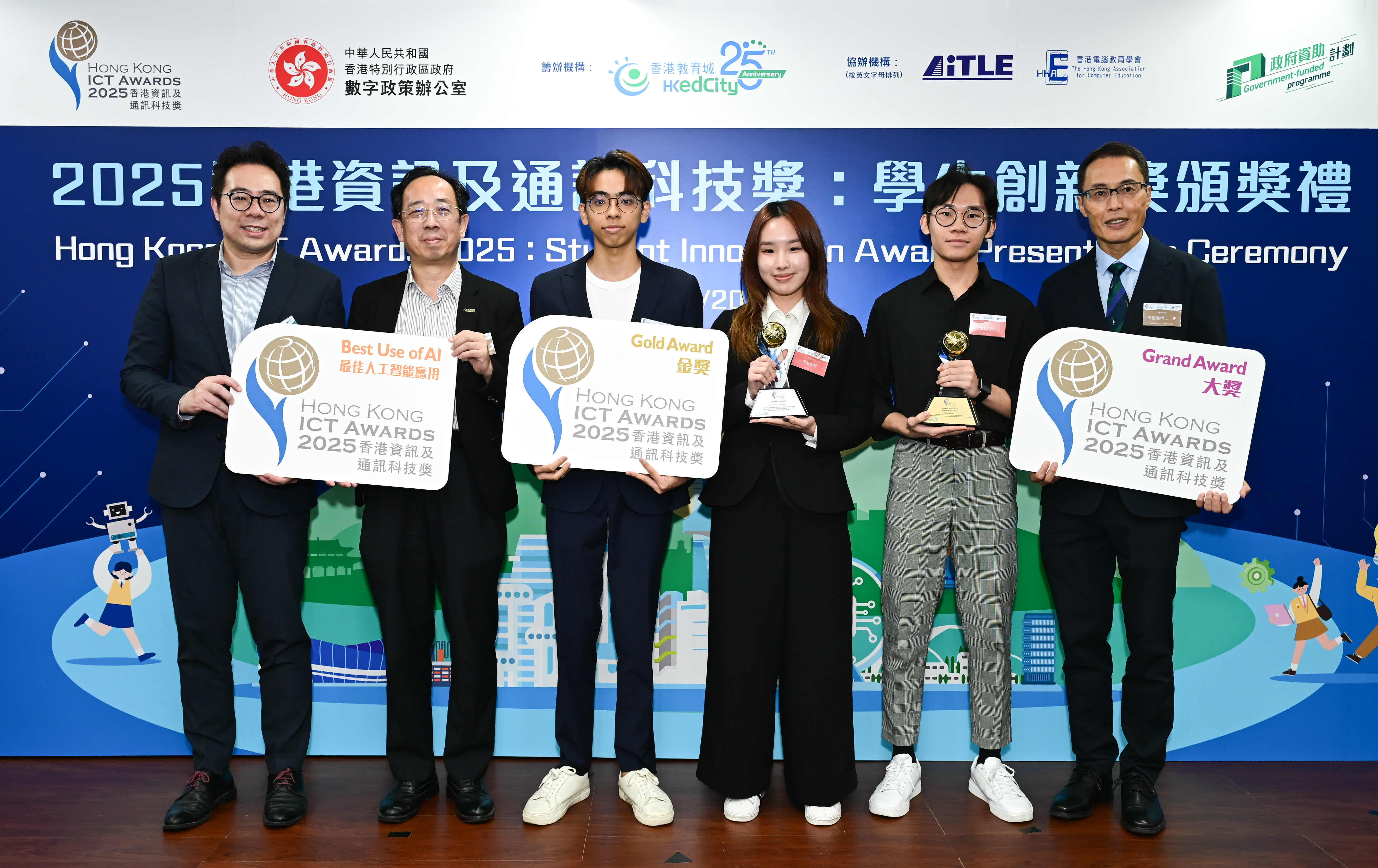 香港文匯報訊(記者 楊梓穎)由數字政策辦公室主辦、香港教育城擔任籌辦機構的「2025 香港資訊及通訊科技獎:學生創新獎」頒獎典禮昨日圓滿舉行。是次比賽吸引來自小學、初中、高中、大專及高等教育學生參與,共接獲逾 420 份計劃書,反應熱烈。其中,由香港中文大學及香港科技大學學生組成的團隊憑人工智能項目「世藝創科」脫穎而出,一舉奪得「學生創新大獎」、「學生創新(大專及高等教育)金獎」及「學生創新最佳人工智能應用獎」三項大獎。