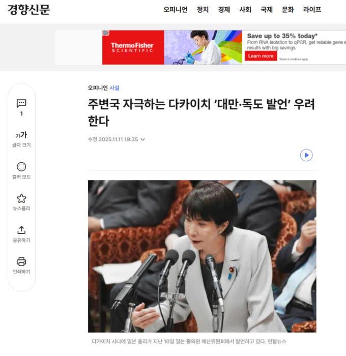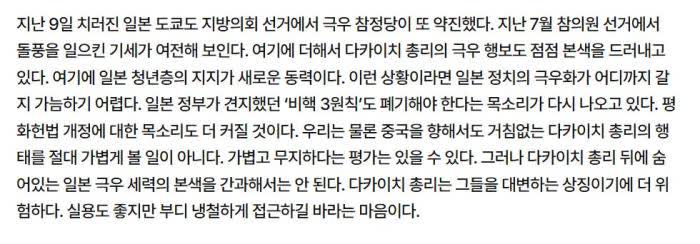 《京鄉新聞》最後直言:「韓國和日本可以互相合作,但如果日本首相繼續這樣下去,韓國不得不重新思考這個問題。」