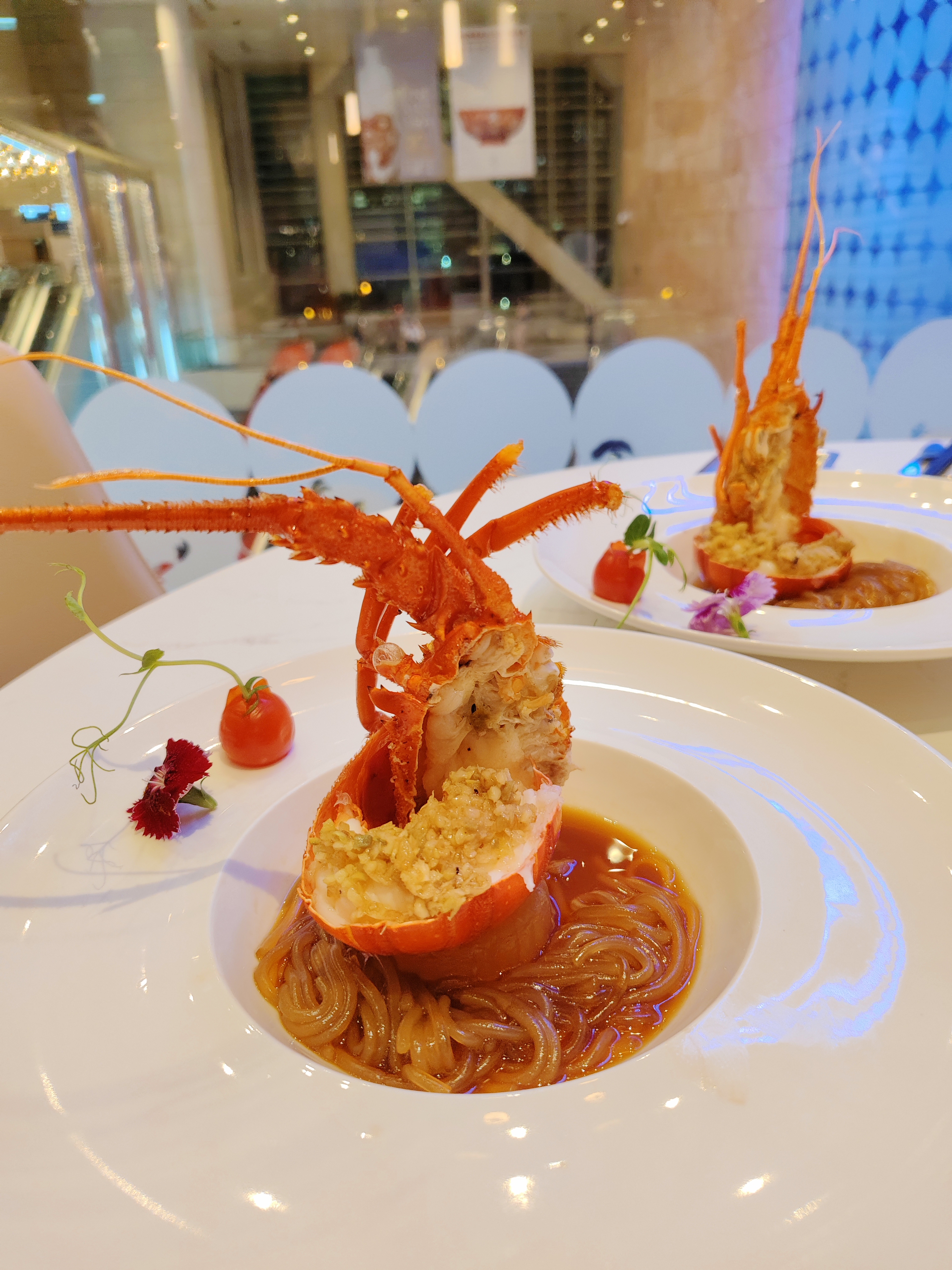 其他推介菜式臘八蒜蓉蒸原隻開邊龍蝦,選用肉質彈牙的新鮮原隻龍蝦配來自中國北方的臘八蒜,取其酸香獨特的風味,以燈籠椒粒、番茄、冬瓜,以及秘製醬油作點綴,更能帶出龍蝦的鮮甜並滲着辛香餘韻﹔選用本地飼養的「香港家豬」炮製的意大利黑醋蜜瓜香煎本地松阪豬,不僅支持本地產業,更實踐低碳環保理念。松阪豬又稱豬頸肉先以哈蜜瓜汁及蘋果醋醃製,師傅更透過真空烹調技術,將蜂蜜滲透入蜜瓜片中。香煎後的豬頸肉油香濃郁,與蜜餞蜜瓜及意大利黑醋一同品嘗能互相平衡,提升整道菜式的層次感。