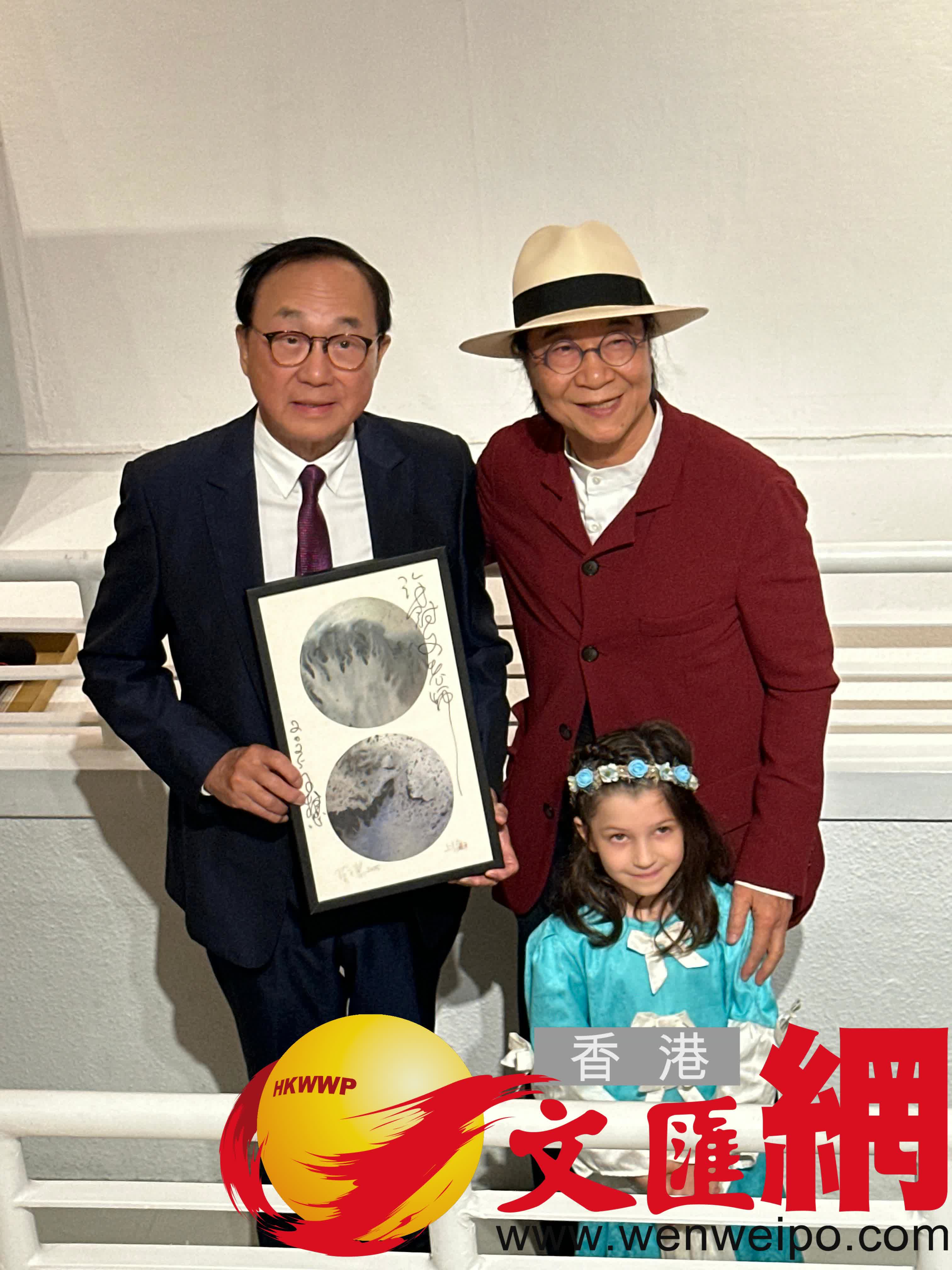 香港文匯報訊(記者 子棠)許冠文昨晚舉家現身支持陳子慧五十年個人展覽 「你懂嗎 - 陳子慧 - 你懂嗎?」。許冠文致辭時表示,主演的大部分電影分鏡都是出自陳子慧手筆,亦是他最欣賞的當代藝術家:「點解認識了數十年仍這麼喜歡他?因為他一直都挑戰自己的極限,不管是書法還是繪畫。我特別喜歡他近數年創作的『冰畫』,並且很奇怪的會覺得他每一幅畫都有一股吸引力,很啟發人心,又令人很想去思考;後來他告訢我說,因為是讓冰自由發揮,借用大自然幫忙畫七成,自己畫三成。在我聽起來,那七成就像是上帝之作,幫忙一起完成。」