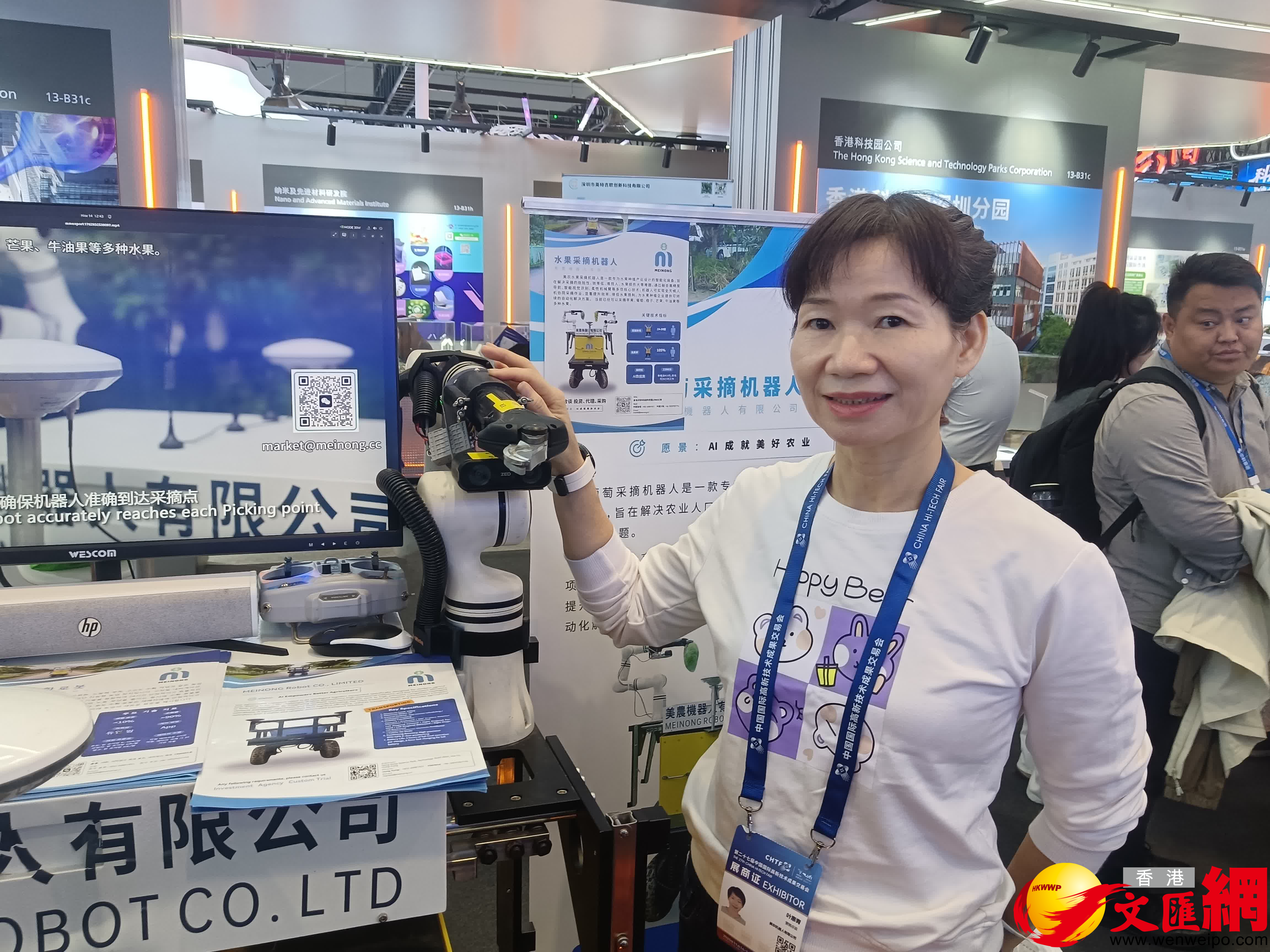 「我們機器人可以摘芒果、葡萄和蘋果等,一台機器人相當於20個人工,目前已獲得墨西哥、澳大利亞和內地山東、廣西等眾多客戶訂單和前來洽談。」港企美農機器人創始人、香港高才李德永在第27屆高交會不斷地向前來諮詢國內客戶講解。