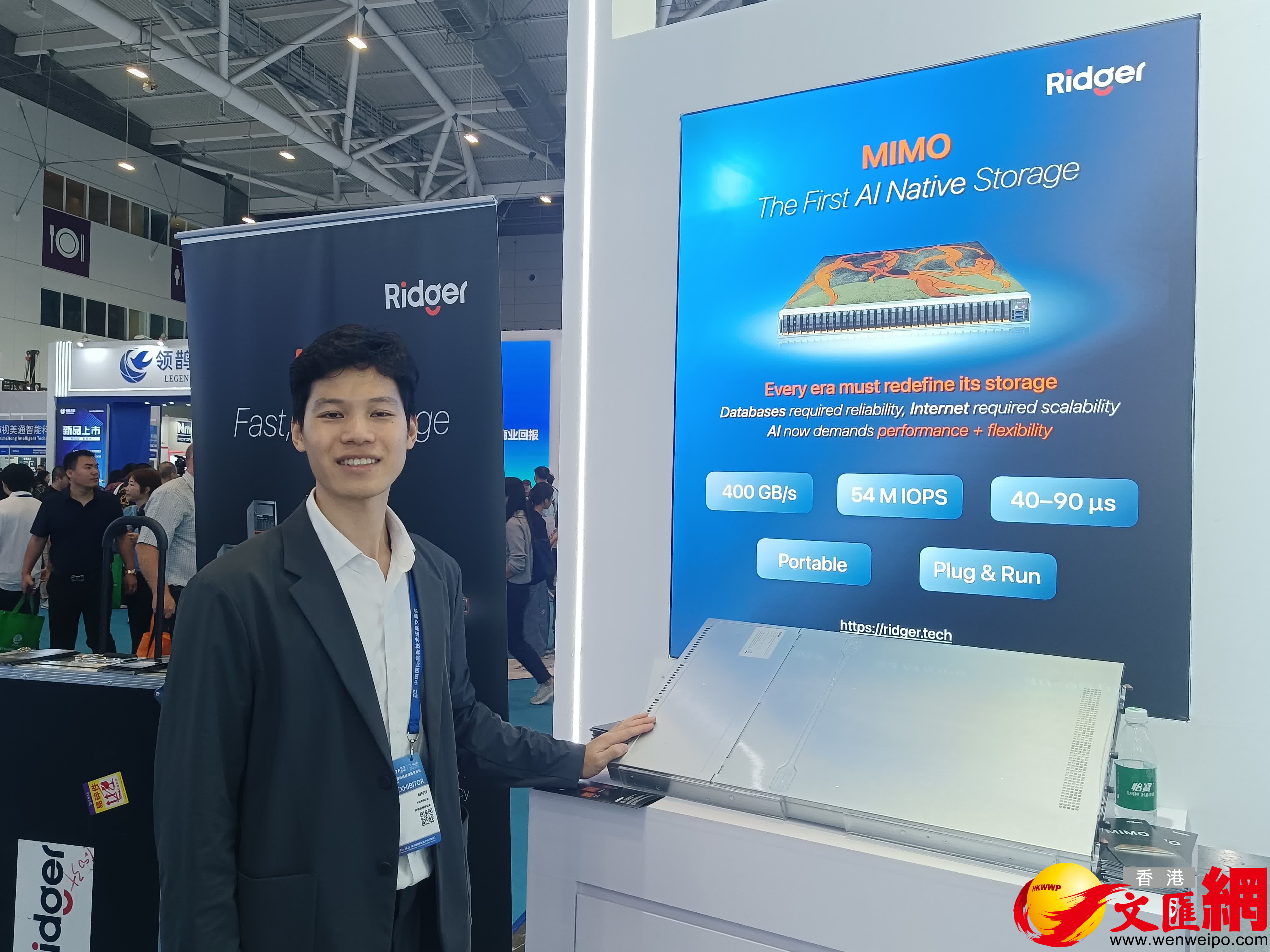 由香港企業Ridger研發的全球首款AI原生存儲系統吸引了許多人的目光,這是該企業在AI領域的又一重大突破。其創始人胡曉雷表示:「因內地人工智能蓬勃發展,機遇和潛力巨大,所以十分看好大灣區和內地市場機遇,因此首次特地來高交會展示,尋求大灣區戰略合作夥伴,運營內地業務,並藉機吸引國際客戶。此次是公司第二次參展,本月初剛在上海參加了進博會。」公司研發的AI原生存儲系統專為AI設計,從多個方面實現了性能的飛躍。過去,企業需要花費300萬才能滿足1000台服務器的數據供應需求,而現在使用該系統,只需十幾萬或小几十萬就能完全滿足,大幅降低了企業的硬件成本、耗能和空間成本。