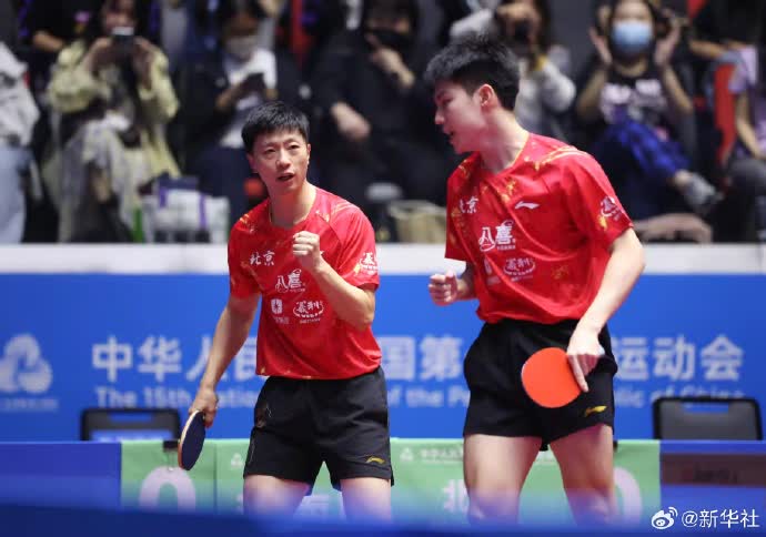 15日晚,在第十五屆全運會乒乓球男團小組賽A組比賽中,馬龍、王楚欽領銜的北京隊以3比2戰勝上海隊,取得兩連勝。