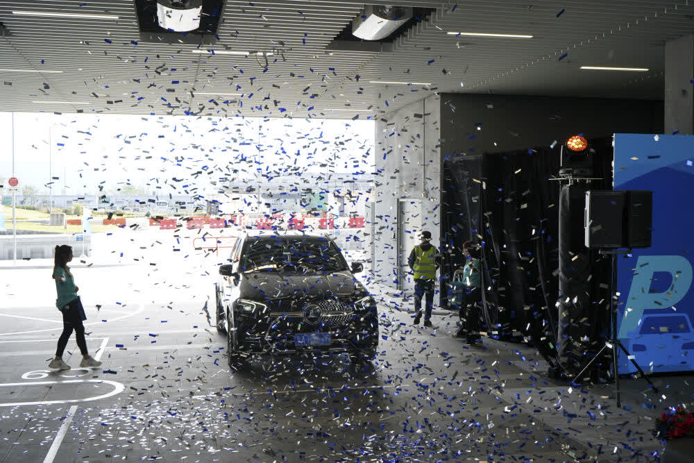 當日,香港國際機場轉機停車場舉辦乘客歡迎儀式。機管局主席林天福致辭表示,由機管局興建與營運的港珠澳大橋香港口岸轉機停車場,是「粵車南下」首個投入服務的項目。旅客從進入綜合檢查亭,辦理存車到轉乘接駁巴士,全程通常半小時內完成。機管局的一站式網上預約系統自11月1日開放旅客登記以來,至今已錄得約3000個開戶登記。