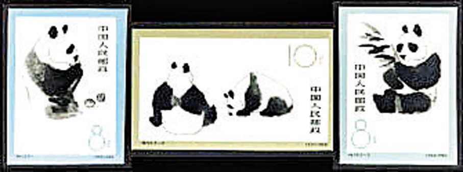 熊貓是中國「特產」,世界著名珍稀動物。中國和世界野生動物基金會簽訂的議定書中說:「大熊貓不僅是中國人民的寶貴財富,而且也是全世界人民所關心的寶貴的自然遺產。」為宣傳保護大熊貓這一珍稀「國寶」,1961年8月5日郵電部發行特59《熊貓》特種郵票,全套3枚。畫面採用吳作人以潑墨寫意的中國畫方式創作的原畫進行設計,並同時發行了無齒郵票。